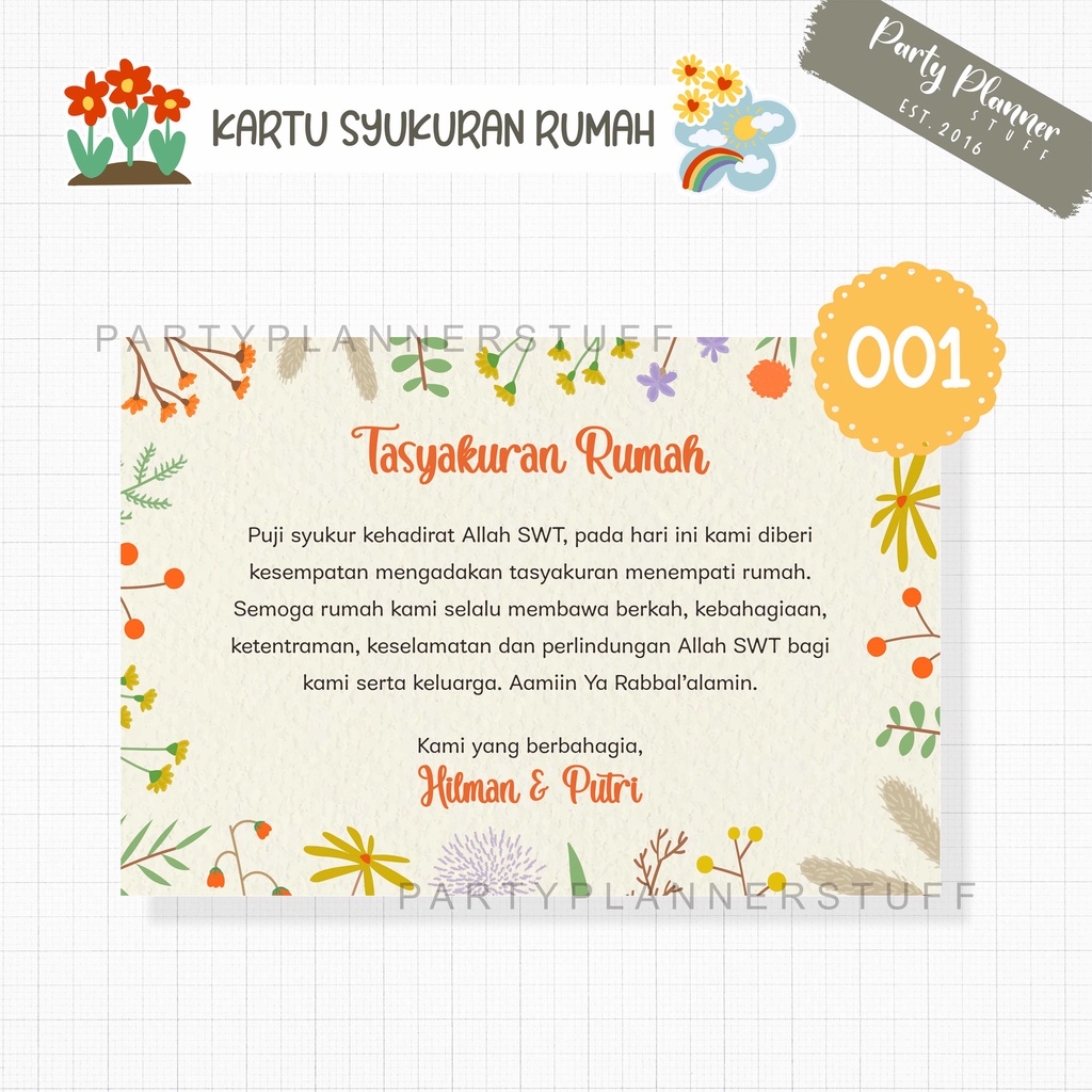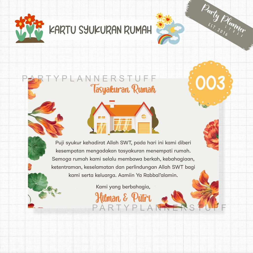 Kartu ucapan tasyakuran rumah / custom kartu syukuran pindah rumah baru / ucapan pindahan rumah / kartu ucapan syukuran rumah