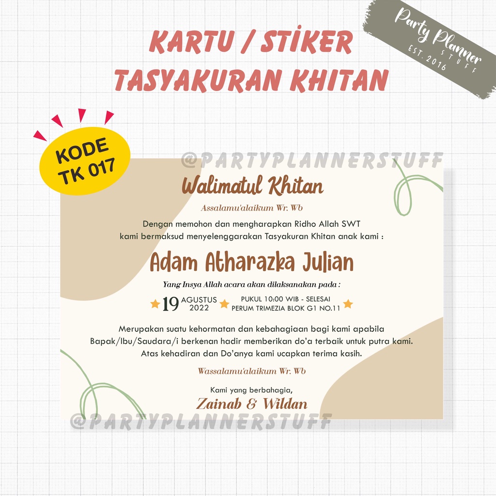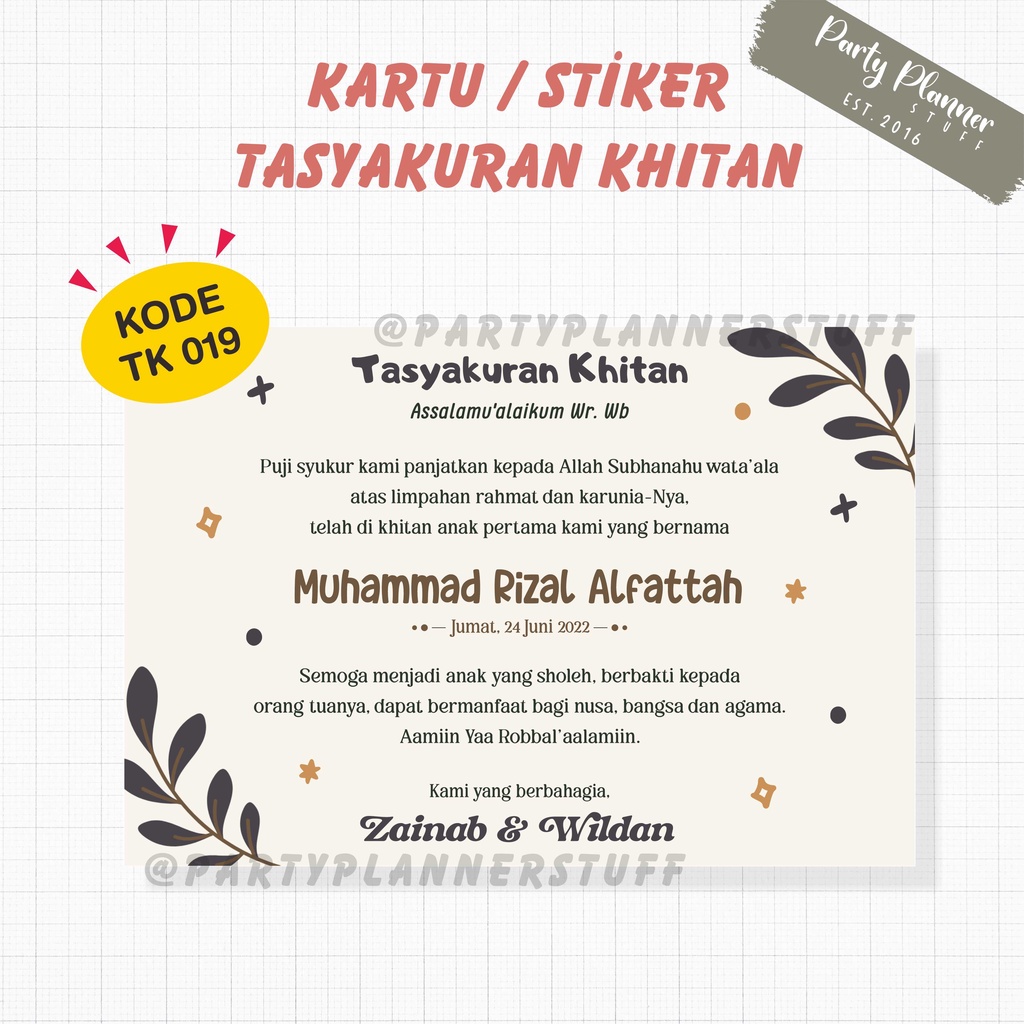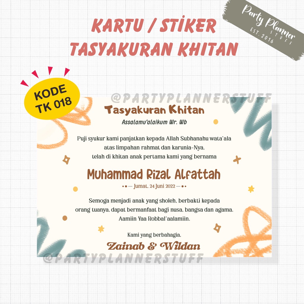 Kartu stiker ucapan tasyakuran khitan anak / tasyakur khitanan / walimatul khitan / kartu stiker box makanan ucapan syukuran khitan sunatan anak