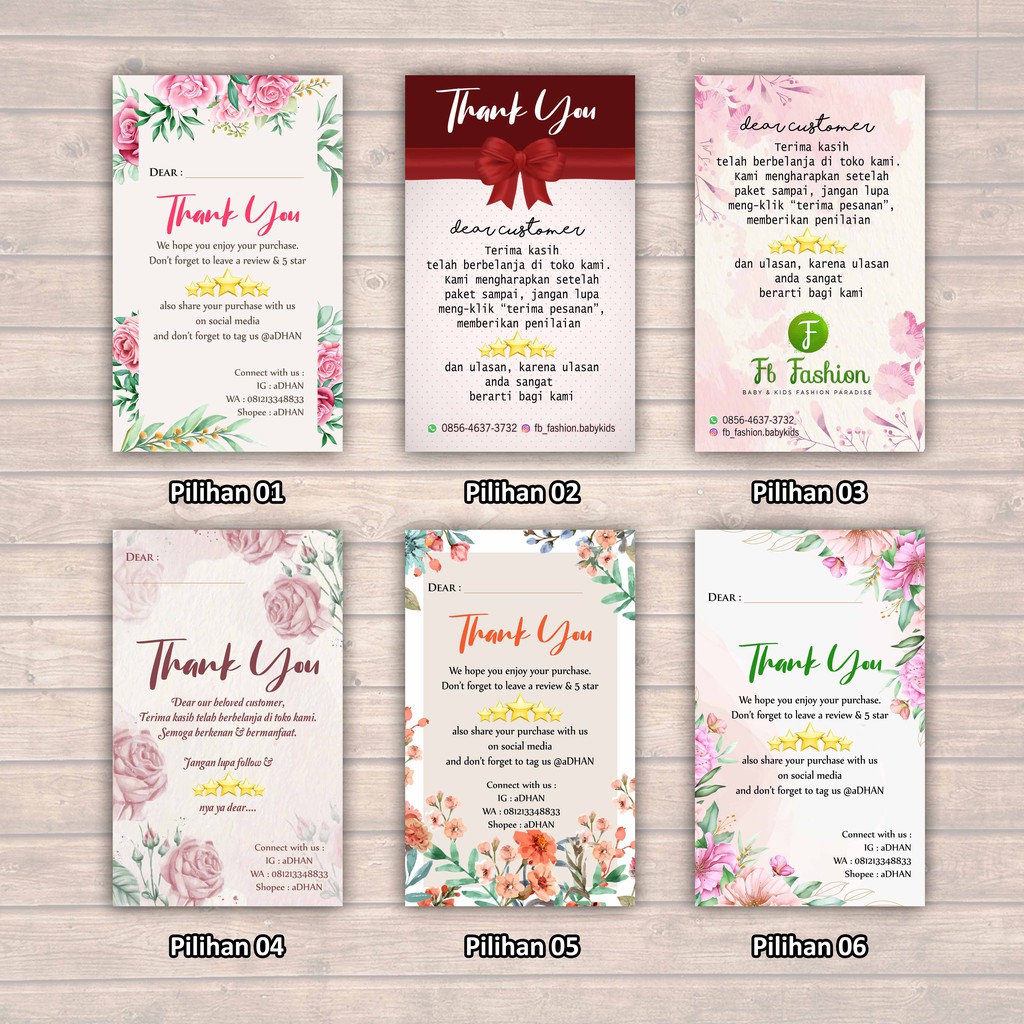 Kartu ucapan terima kasih online shop / thank you card olshop / stiker olshop / custom kartu olshop