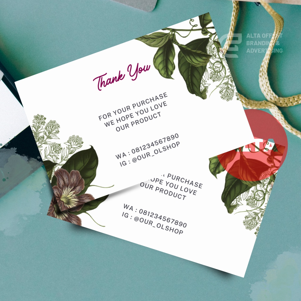Kartu ucapan terimakasih untuk Online Shop, Toko, Hampers, Wedding/Walimah/Lamaran/ Syukuran Kode KO013 ( Min.Order 120 pcs ukuran 4 x 6 cm )