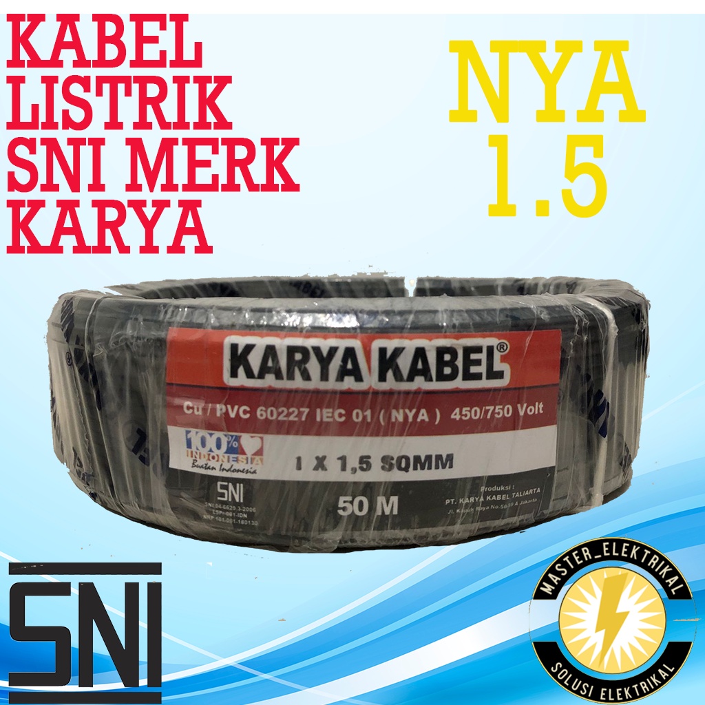 Karya Kabel NYA 1.5 @50m/Kabel Tunggal/Kabel Kawat/Kabel Tembaga/Kabel Listrik