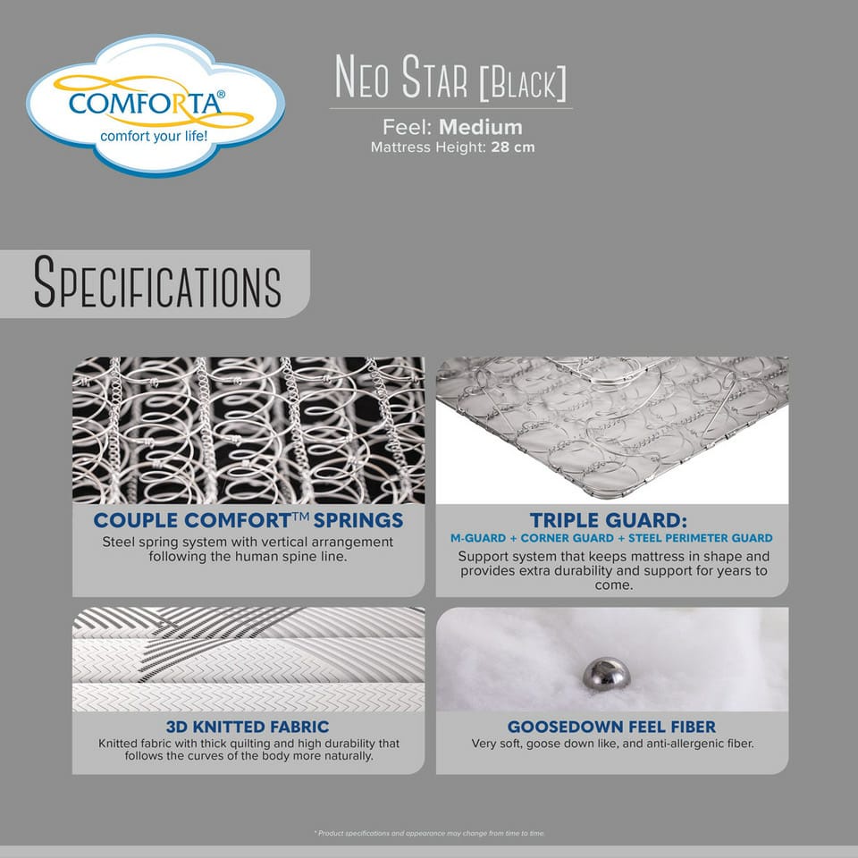 Kasur Spring Bed Comforta type Neo Star Uk.90/100/120/160/180/200 ( Kasur Saja & Fullset )