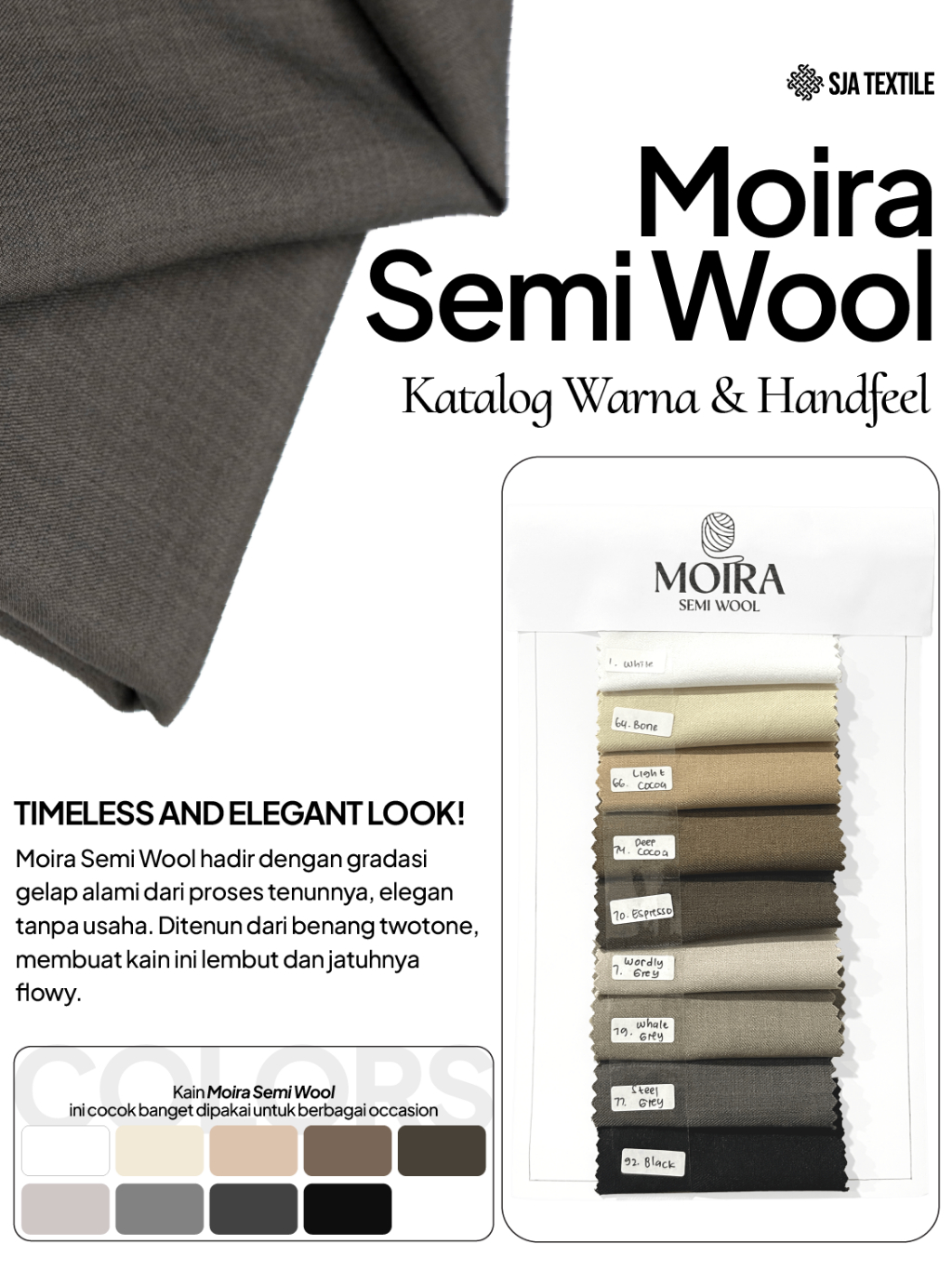 Katalog Moira Semi Wool by SJA Textile - Catalogue KatalogKain Semi Wool Bahan Kain Eceran Semi Wool Premium Bahan Blazer Outwear Polyester Semi Wool Kain Spandex