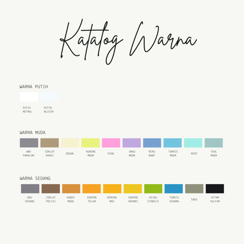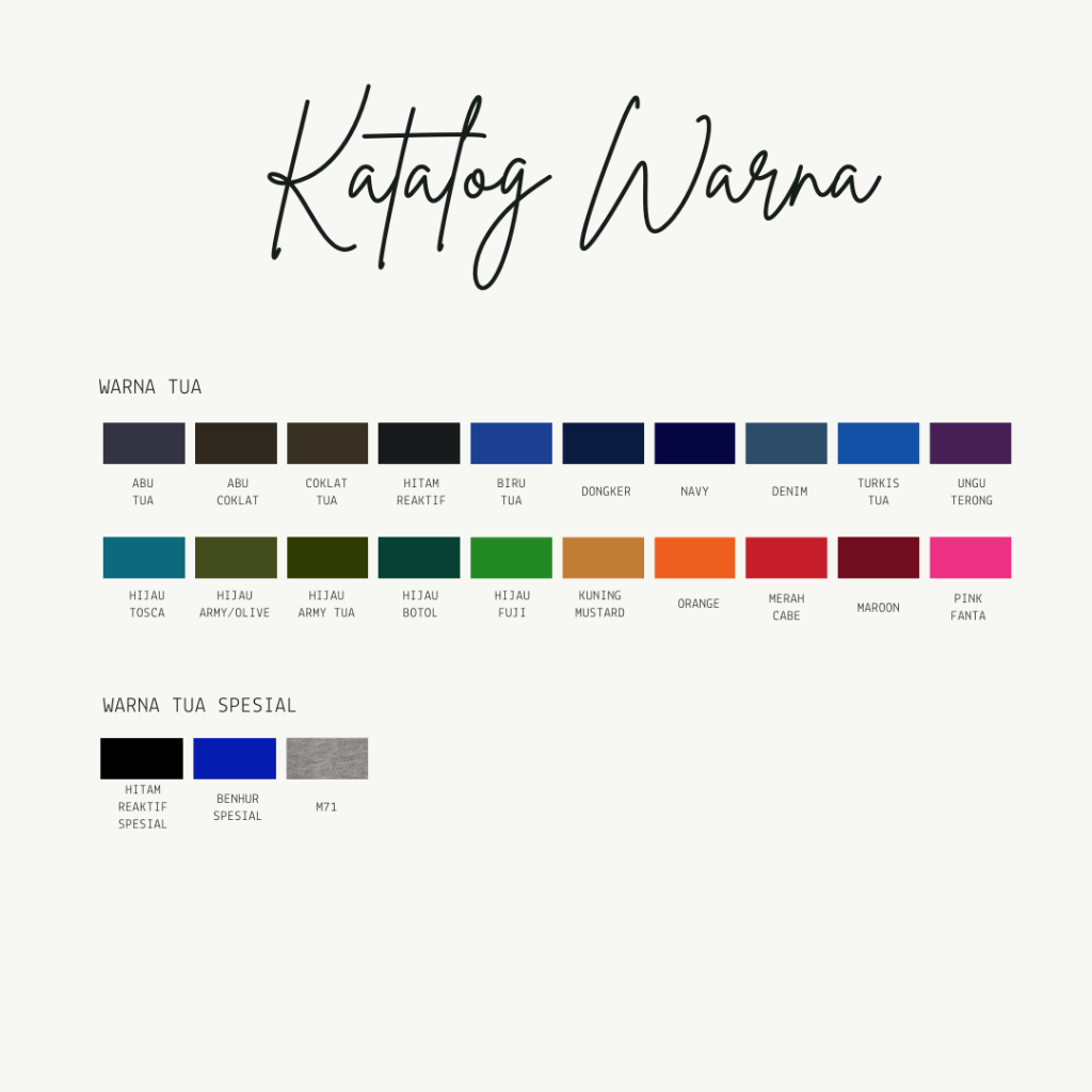 Katalog Warna Kain Bahan Kaos (Cotton Combed, Cotton Carded Soft, TC, Babyterry, Pique, Fancy)