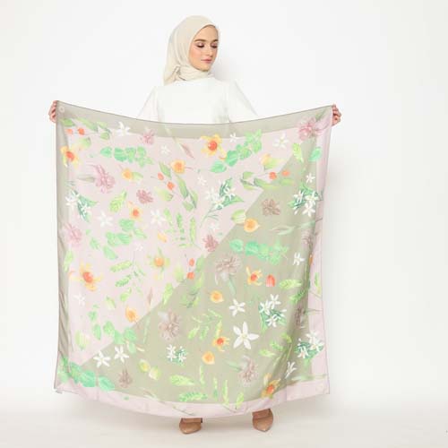 Baur in Matcha Leaves Double Sided Scarf Hijab Scarf Printing 2 Sisi - Katonvie
