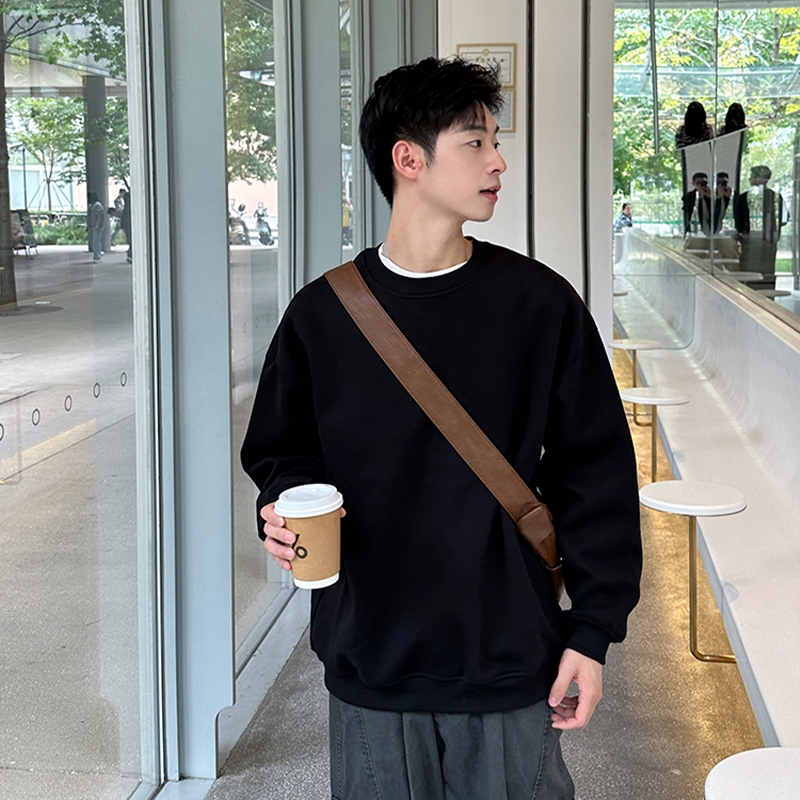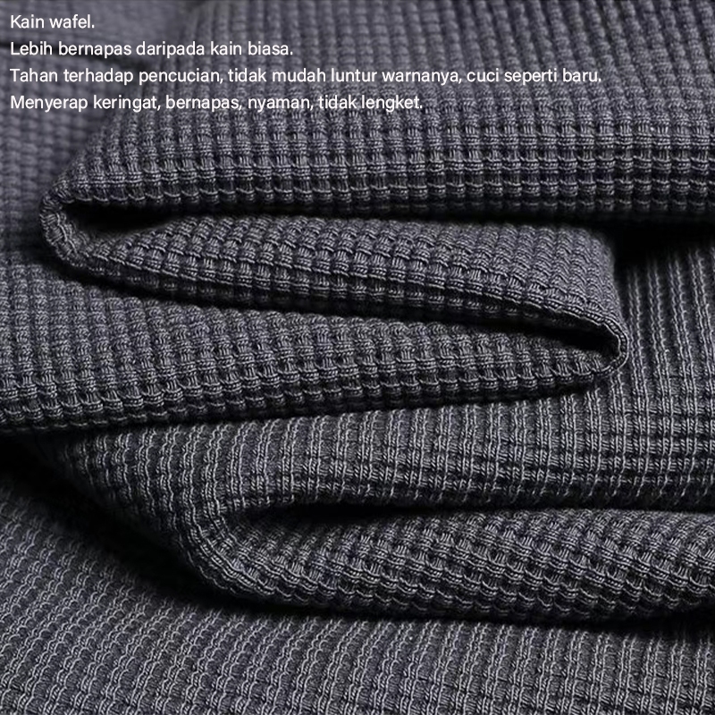 Kaus Lengan Panjang Pria Kerah Bulat Pullover Waffle Waffle Kemeja Lengan Panjang Kaus Korea Santai Longgar Kaus Mode Impor Netral