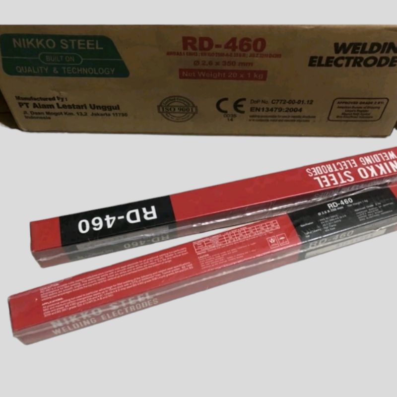 Kawat Las Nikko RD 460 2.6MM (5KG)/ Kawat Las Nikko Steel RD 460 ukuran 2.6mm x 350mm kemasan dus isi 5kg