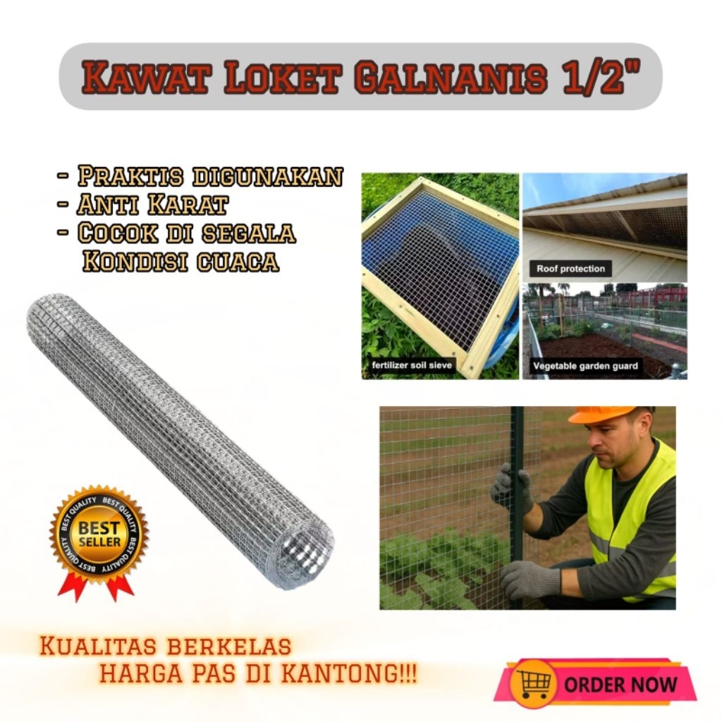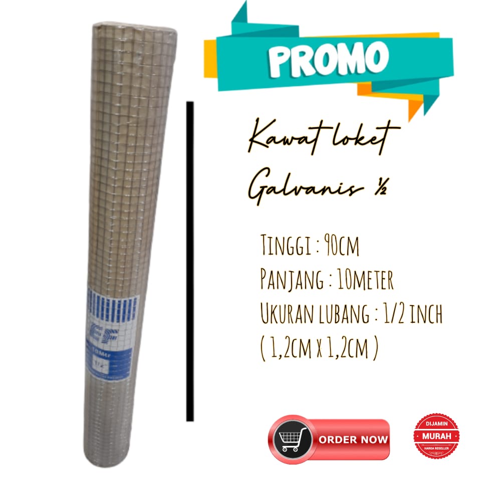 Kawat Loket Putih Silver Ukuran Setengah Inch Panjang 10 Meter Tinggi 90 cm Kawat Ram Galvanis 1/2" Untuk Ayakan Pair Atau Bisa Untuk Kandang Ayam Burung