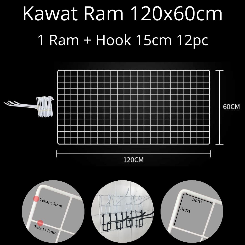 Kawat Ram 120x60 Cm 3mm Rak Display Aksesoris HP - Rak Gantung Putih
