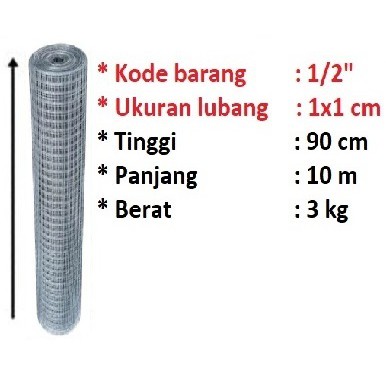 Kawat loket Galvanis ada ukuran 1/4" 1/2" 3/4" kotak P 10m T 90cm ayakan kandang ayam kelinci ternak