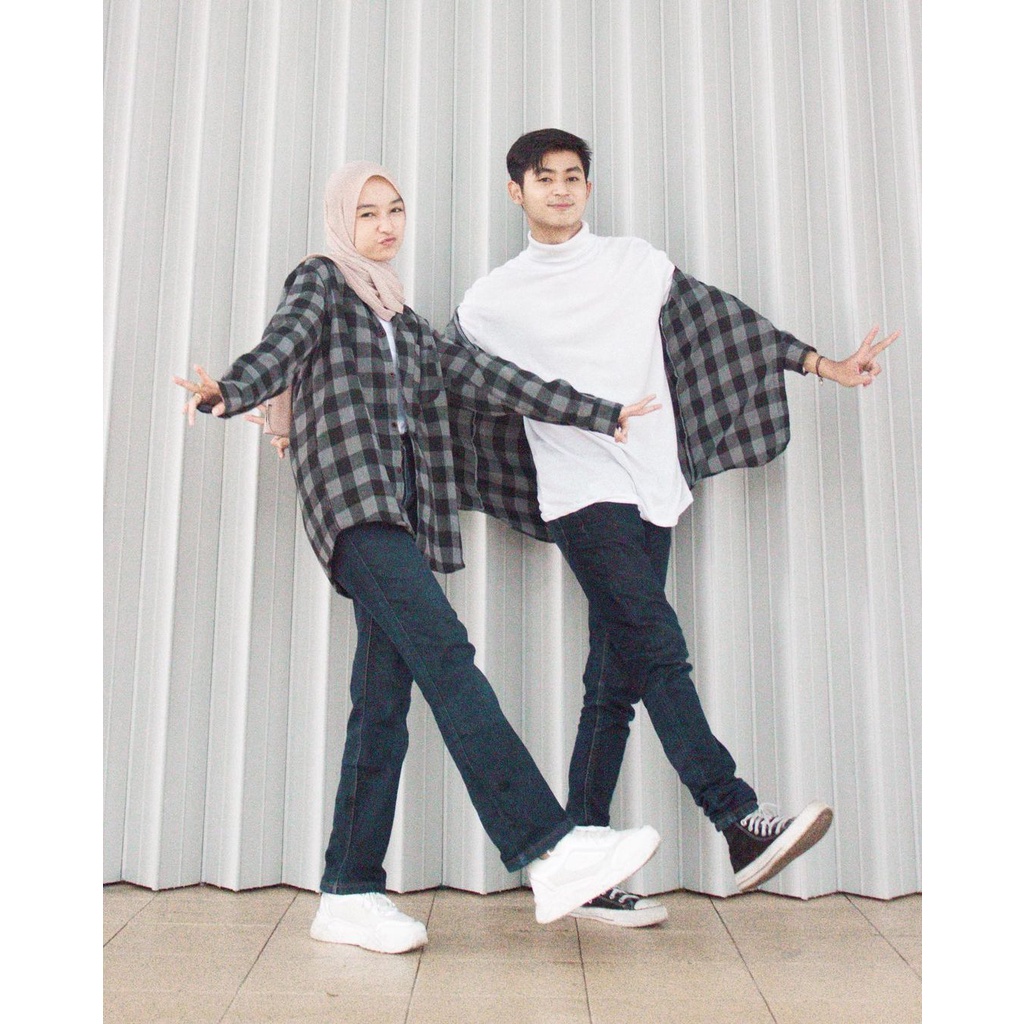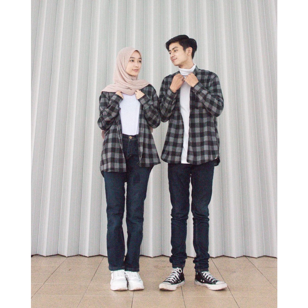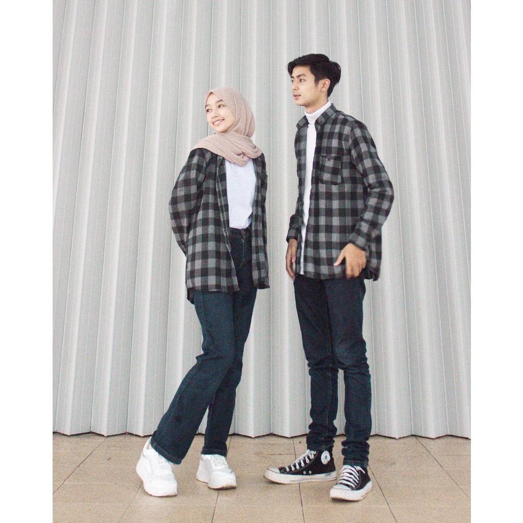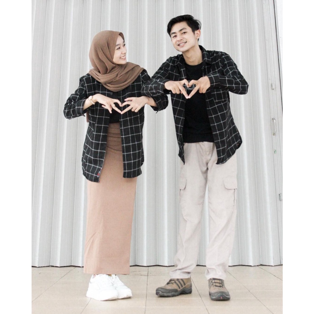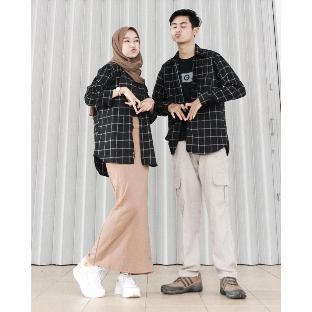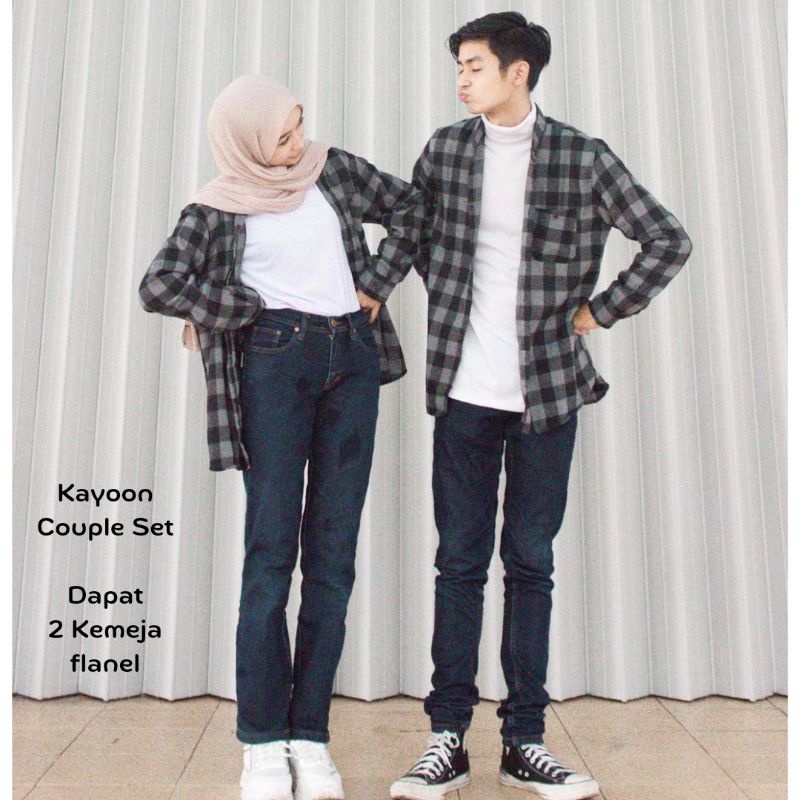 Kayoon Kemeja Couple Set - Baju Couple Kemeja Flanel Kotak Kotak - Outer Couple Pasangan OOTD