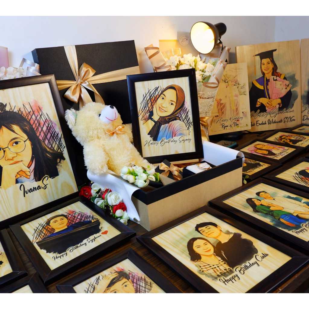 Kayu Foto lukis wajah Hadiah Ulang Tahun Wisuda kado ulang tahun anniversary wedding