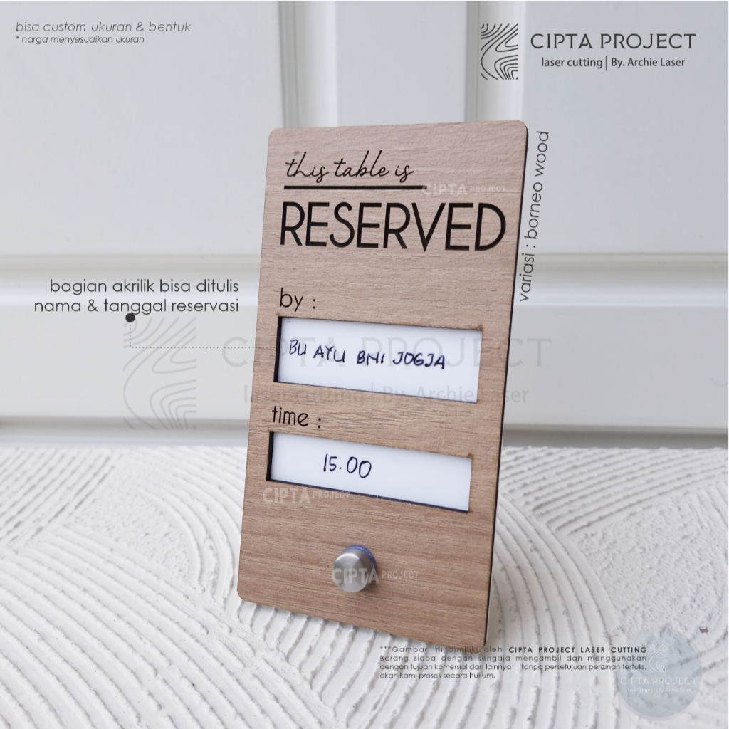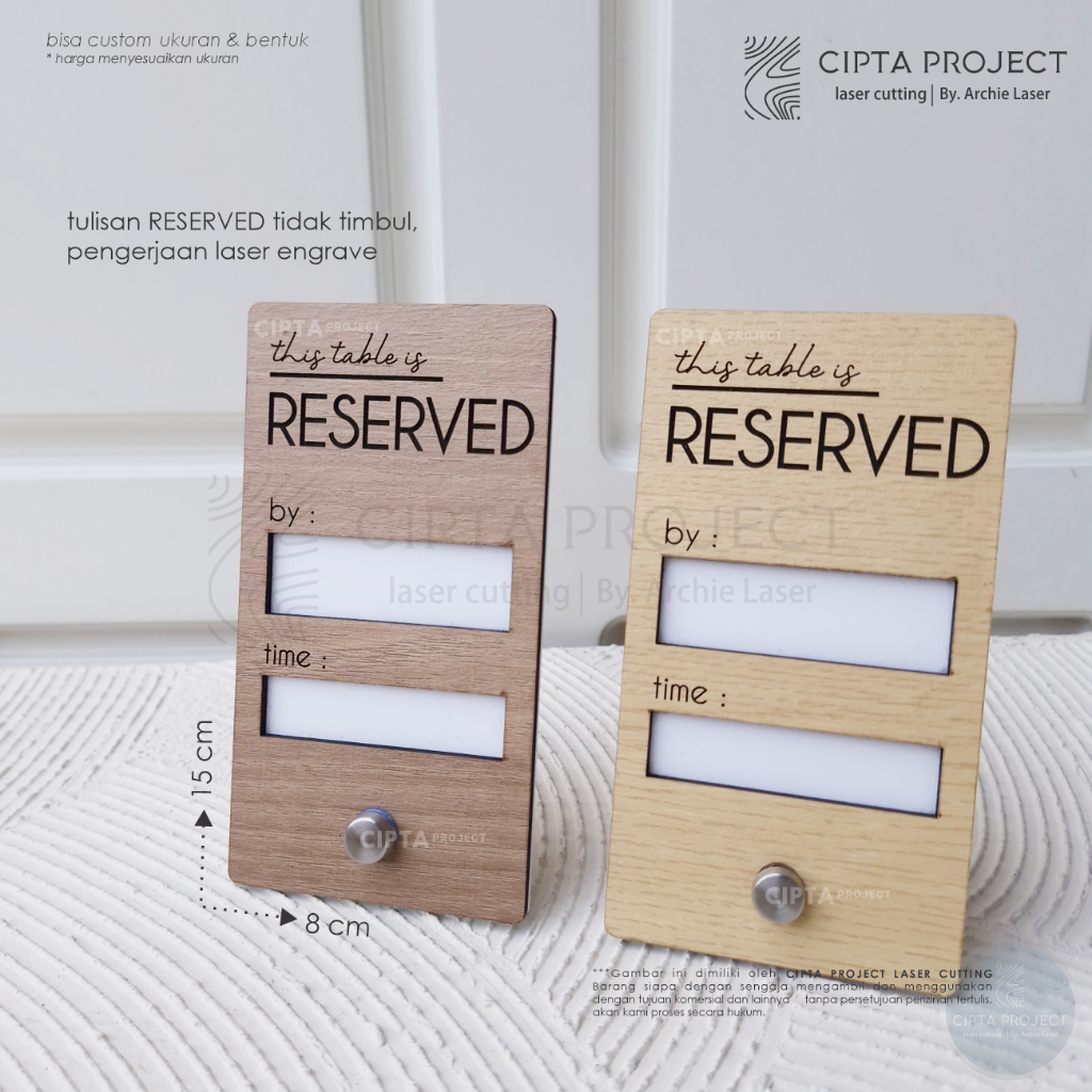 Kayu Tanda Reserved / Papan Meja / Reserved / Desk Sign / Wooden Reserved Board / Papan Meja Reservasi