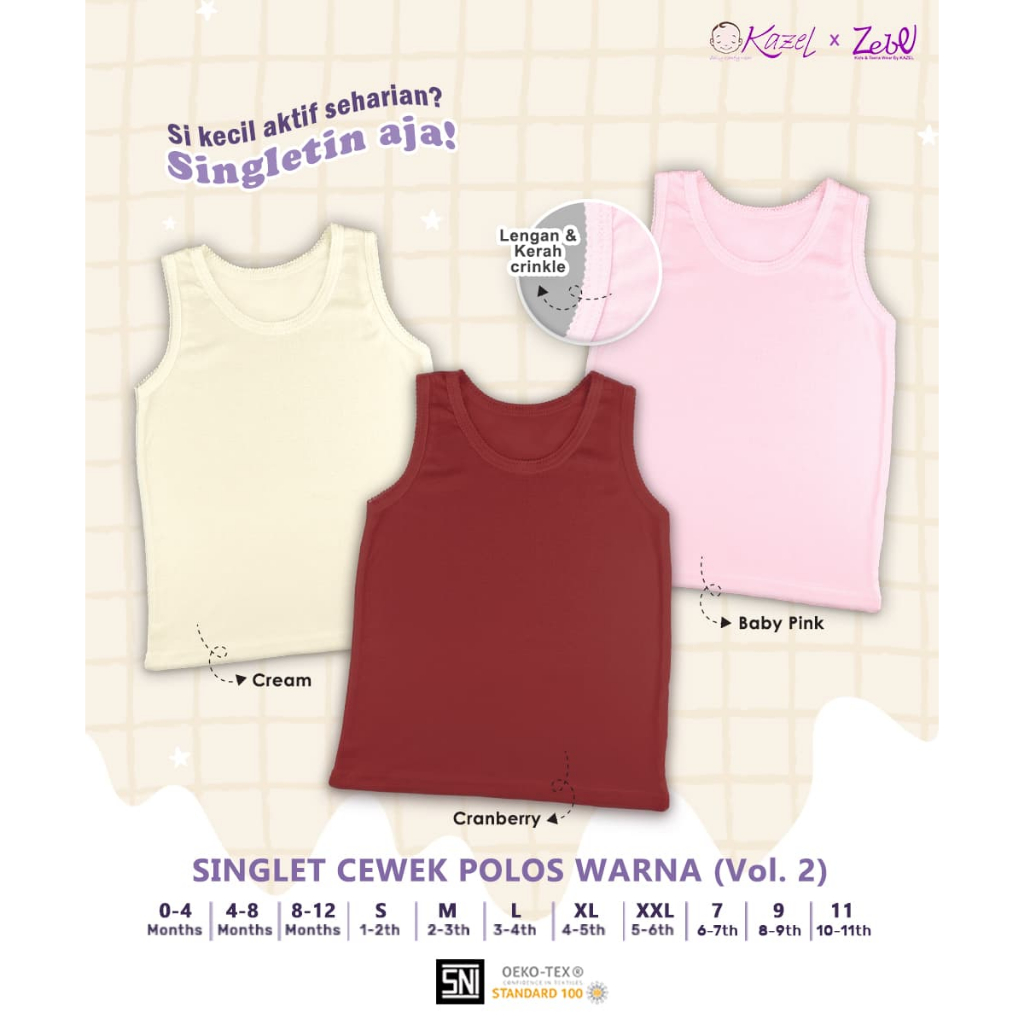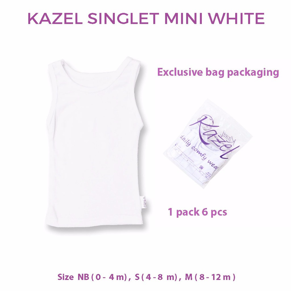 Kazel 3Pc Singlet Putih Adem 0 - 12 Tahun Singlet Warna Putih Anak Kazel x Zebe Half CBKS