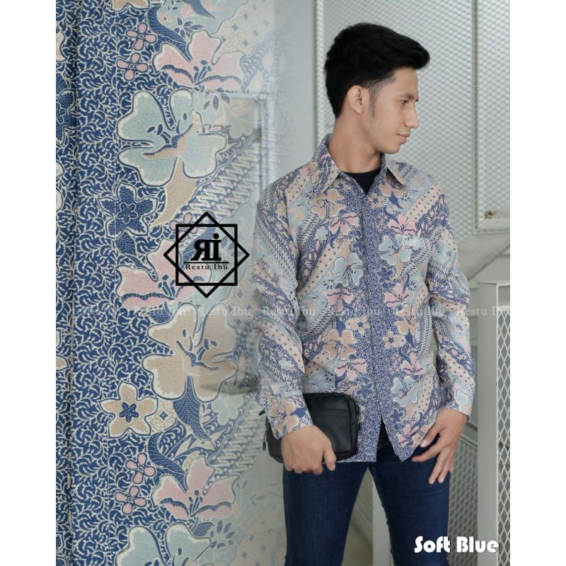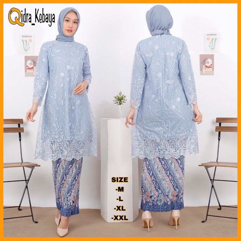 Kebaya Couple Tunik Tulle Baby blue / Couple Kebaya Wisuda/ Baju batik Couple motif Soft Blue