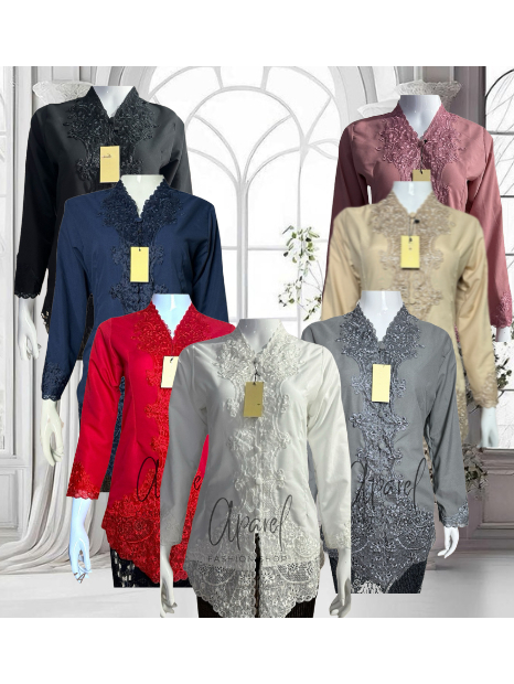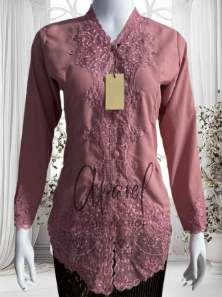 Kebaya Encim Bordir Senada Tangan Panjang Bahan Katun Mikro