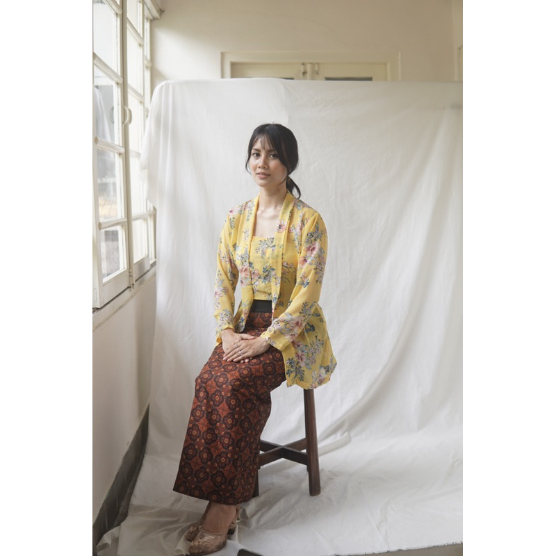 Kebaya Kutubaru Kahiyang - Kebaya kutubaru lengan panjang motif bunga warna kuning