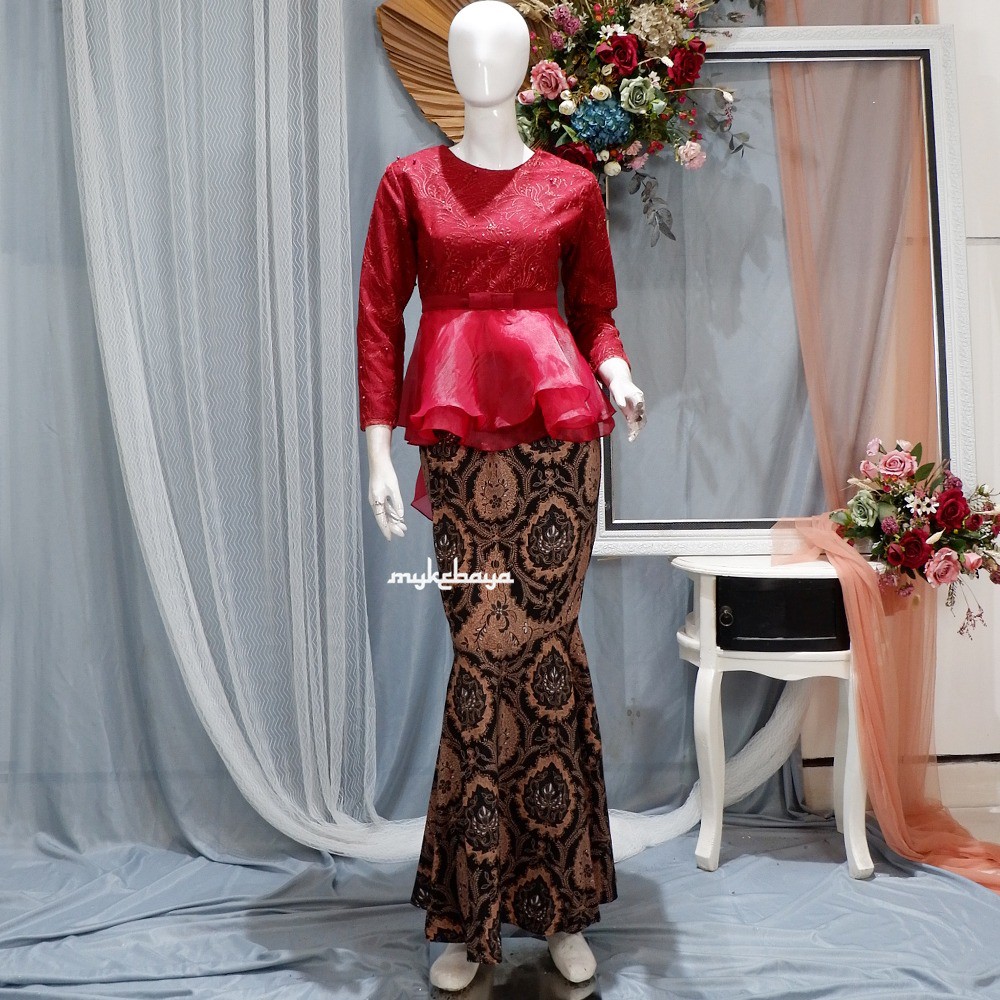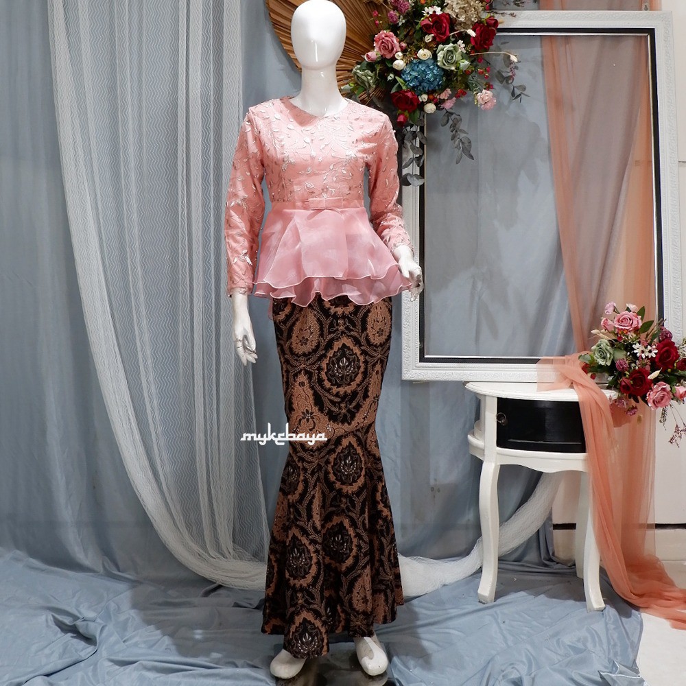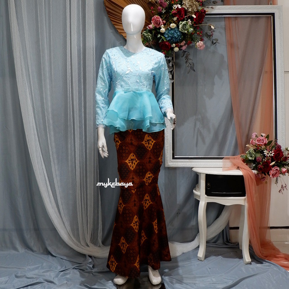 Kebaya Modern Miora Tulle Rambat mix Organza Full Furing Peplum Rok Sanwose Wisuda Lamaran Pesta Set