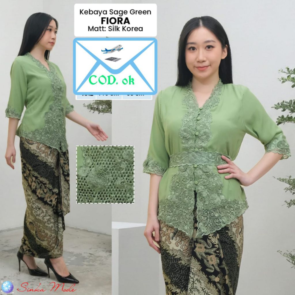 Atasan Kebaya Encim Senada Modern Silky Korea Kombinasi Brukat Lapis full furing