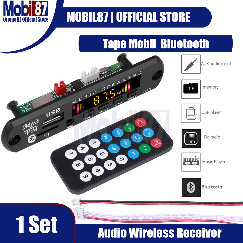 Kebidu Tape Mobil Audio Speaker MP3 Player Bluetooth Wireless Receiver - 747D - Black kebidu 9V 12V Car MP3 WMA Decoder Board Audio MP3 Player USB TF FM Radio Module Wireless Bluetooth 5.0 For Car Bluetooth 5.0 Car Kit Wireless MP3 Decoder Board Mobil87