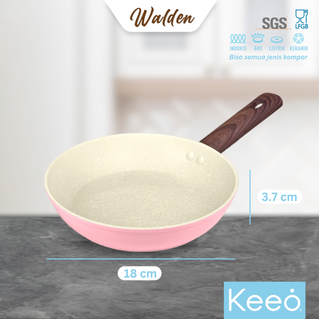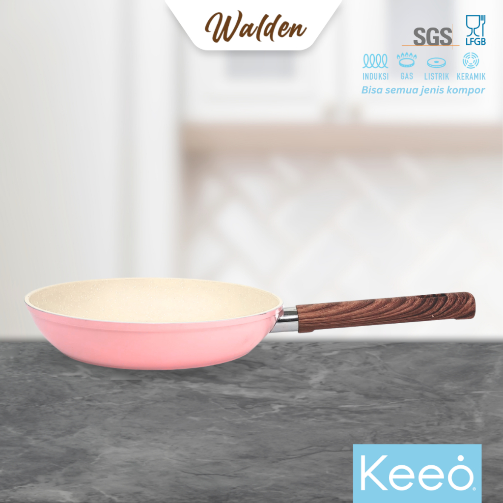 Keeo Walden 18 cm Wajan Risol Teflon Penggorengan Frypan Anti Lengket Marble Granit Alat Masak Pink
