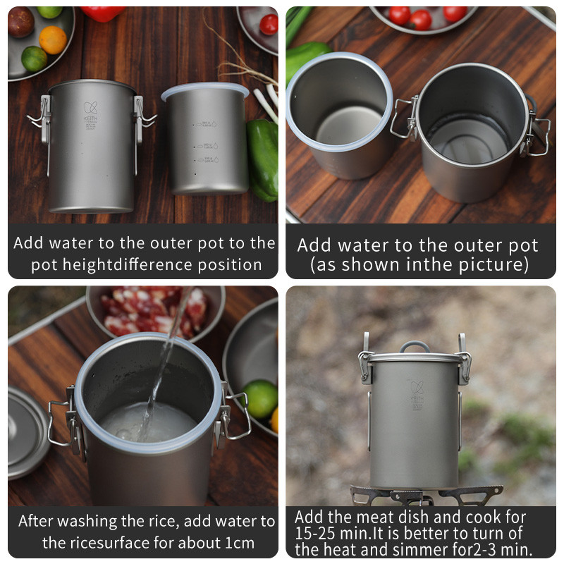 Keith Titanium Pot Rice Cooker 900ml Multi-functiona Outdoor Camping TI6300 Professional Cooking