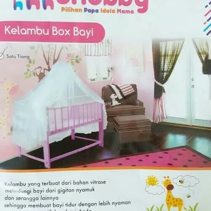Kelambu Box Bayi 1 Tiang Putih / Kelambu Tempat Tidur Bayi / Kelambu Baby