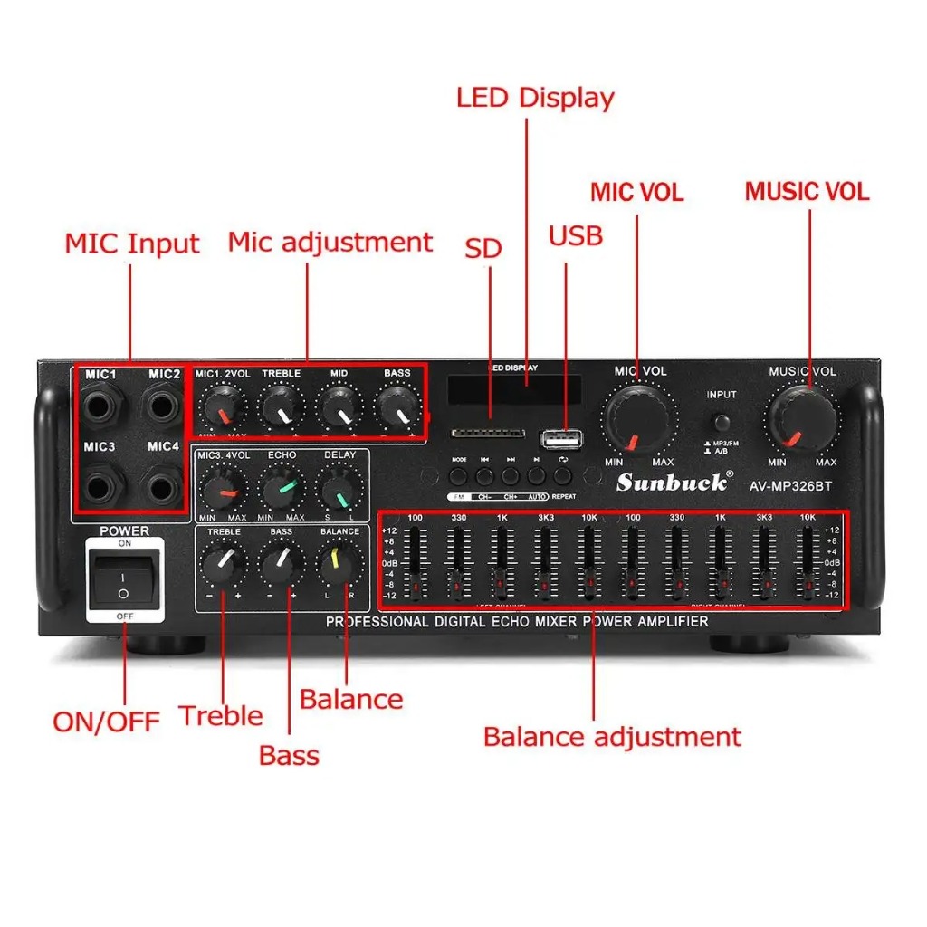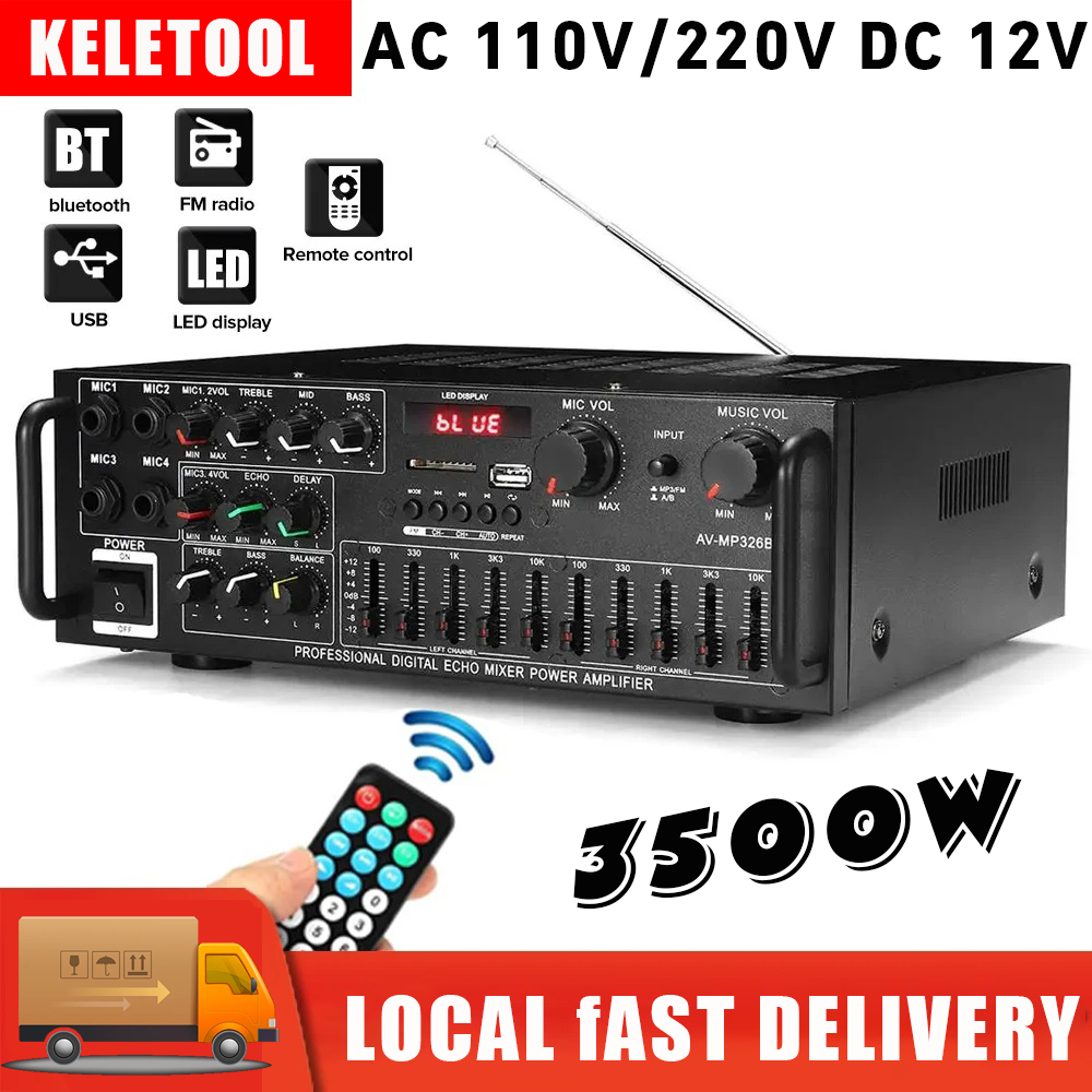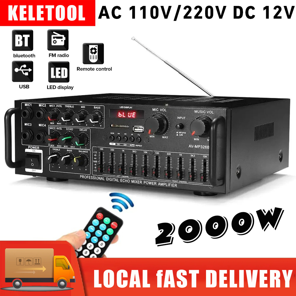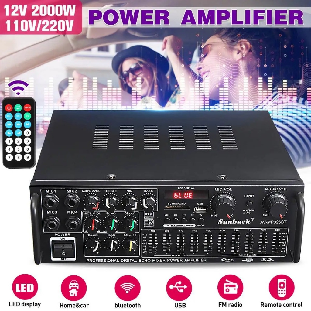 Keletool Amplifier Bluetooth Wireless Audio Amplifier Stereo Remote Control with 4 Mic Inputs SD Card Slot LED Display Karaoke Home Theater