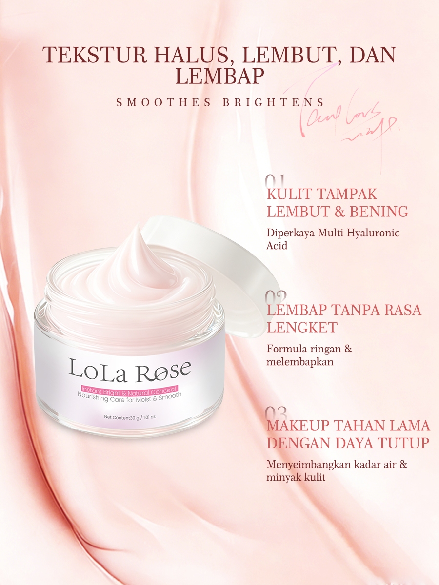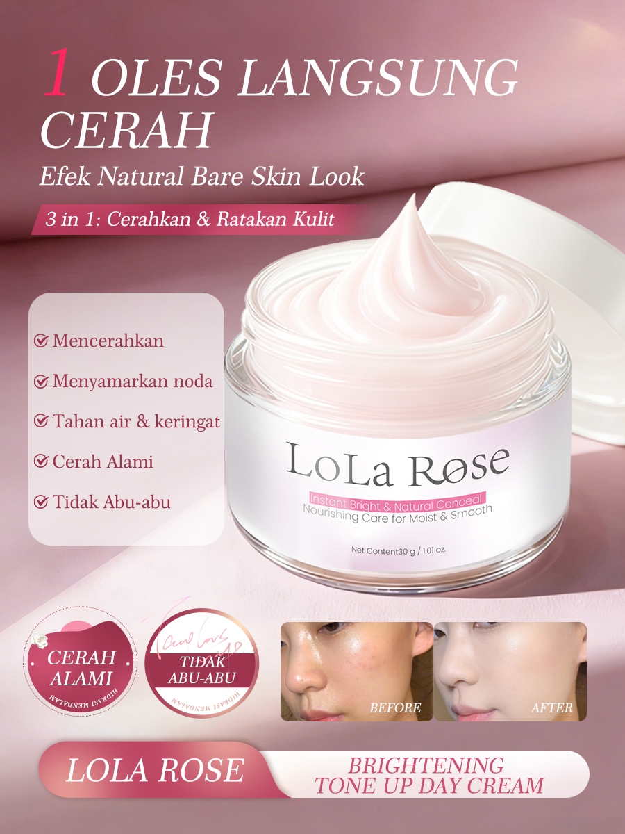 LOLA ROSE Brightening Day Cream Tone Up Cerah Alami Pelembab Wajah Niacinamide Pemutih Wajah Glowing Bb Cream 100% Original Membantu Kulit Tampak Lebih Cerah & Glowing Tekstur Ringan Moist 30g