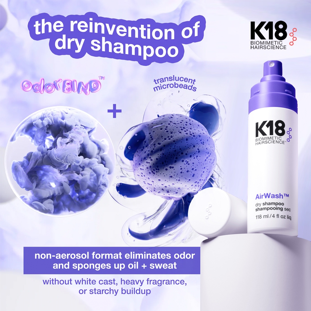 K18 AirWash Dry Shampoo 118ml - Shampoo Tanpa Cuci Bilas Premium Non-Aerosol