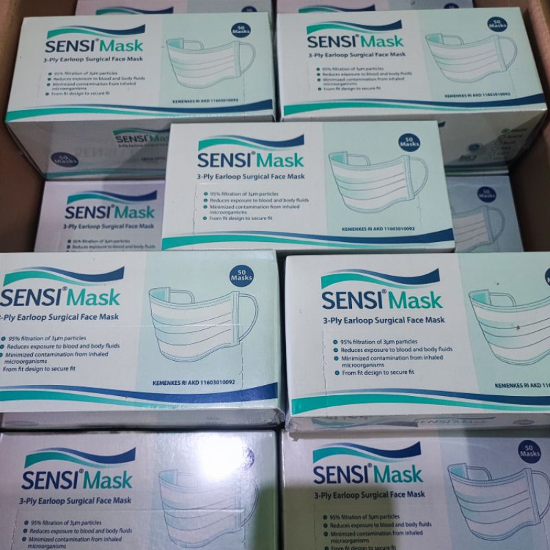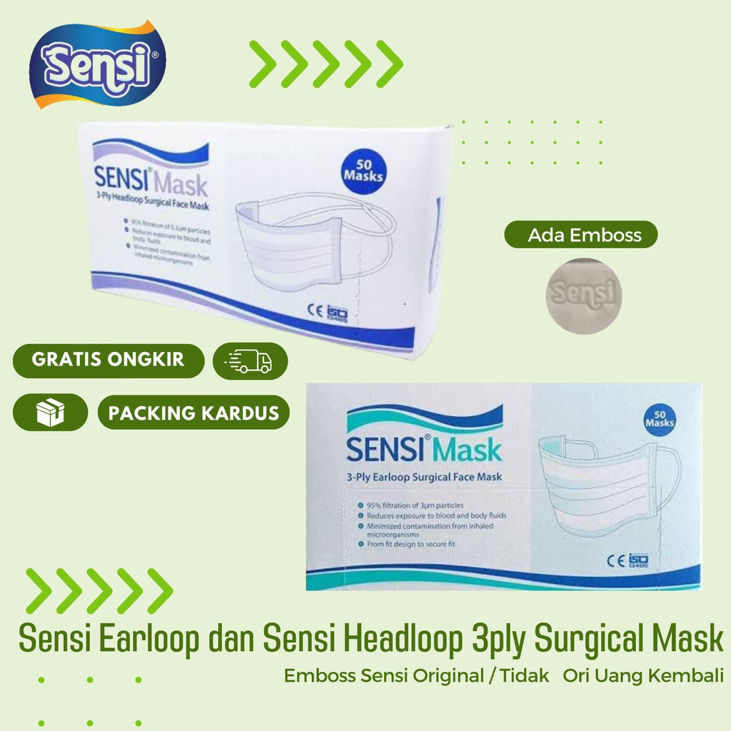 Masker Sensi Earloop dan Headloop Medis 3ply isi 50 - Sensi Face Mask Surgical