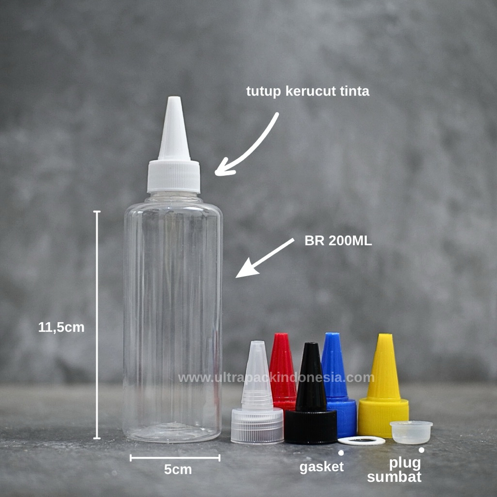 BOTOL PET BR 200ML CLEAR + TUTUP KERUCUT + PLUG DALAM + GASKET BUSA