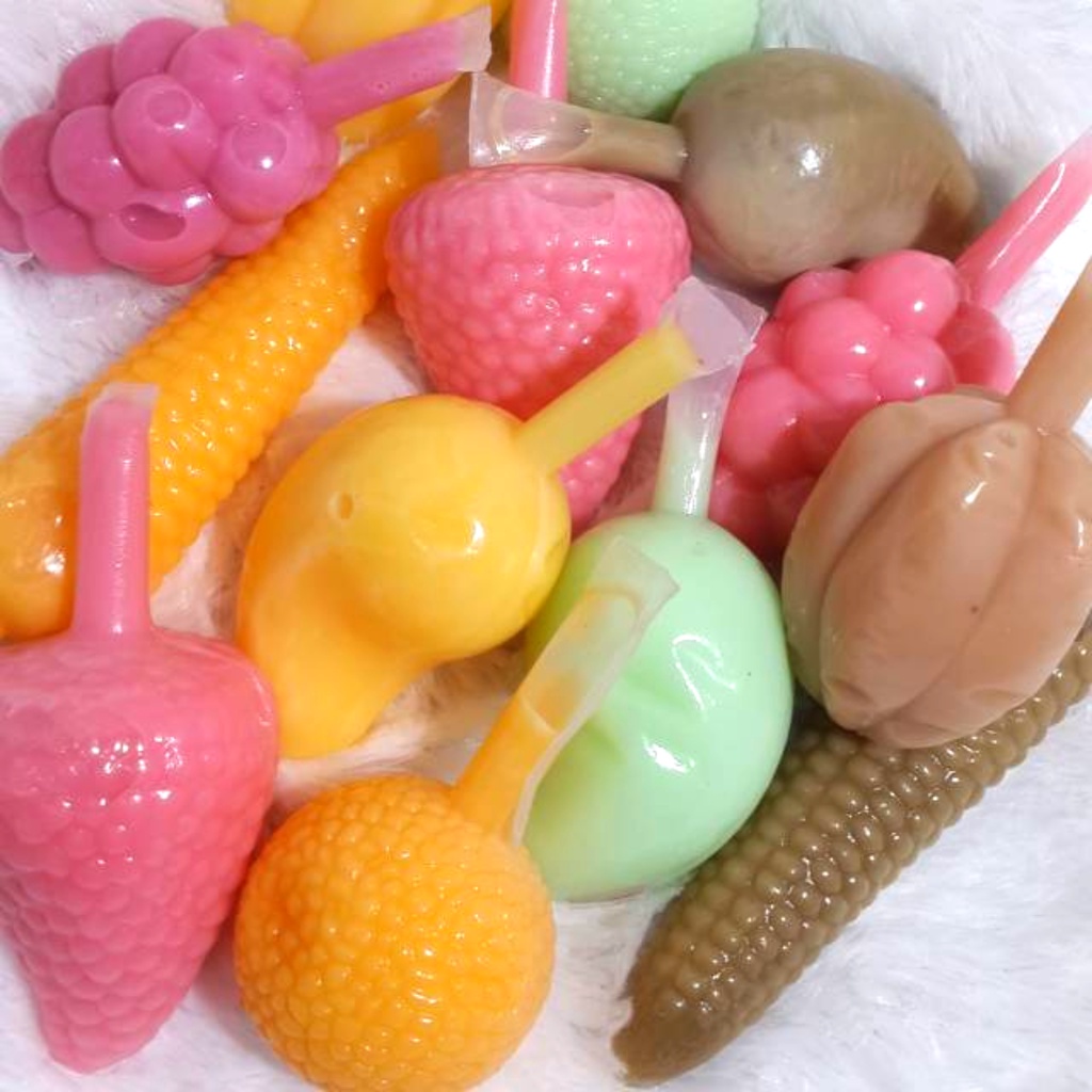 Kemasan Es Kiko Es Wawan Plastik Eskrim Mambo Bentuk Buah Bungkus Pudot isi 100 pcs Plastik Es Karakter Unik