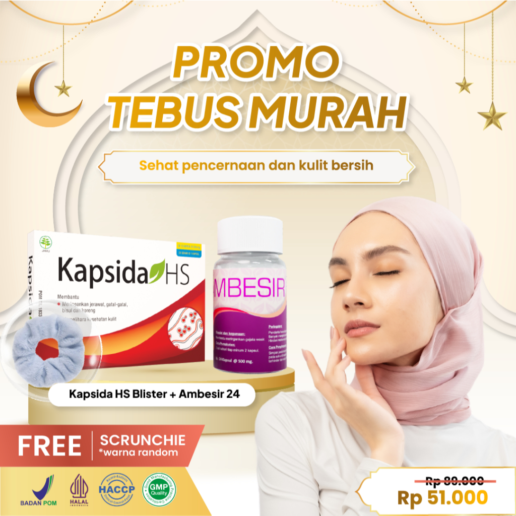 Kembang Bulan Kapsida HS 12 Kapsul FREE SCRUNCHIE KOREA - Obat Jerawat Gatal-gatal Kulit Bisul Alergi Bekas Jerawat Punggung dan Batu Ampuh untuk Kesehatan Kulit