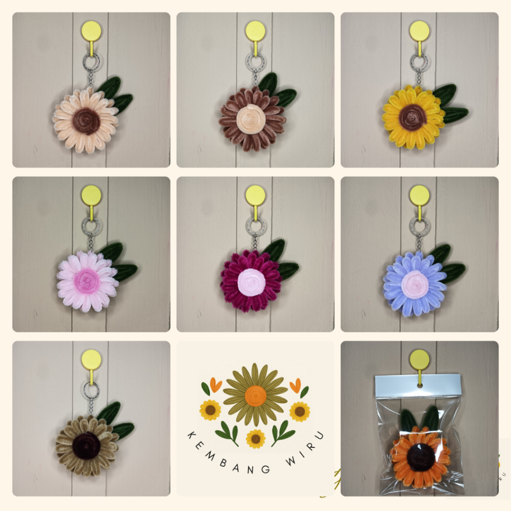 Kembang Wiru - Bunga Matahari - SunFlower - Gantugan Kunci Kawat Bulu - Souvenir - DIY - Estetik - Hiasan Tas