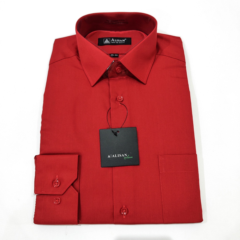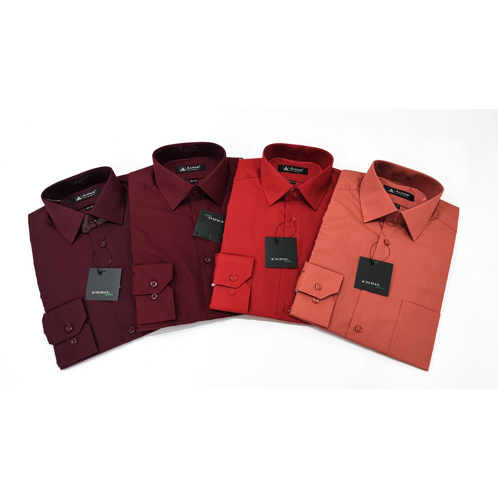 Kemeja ALISAN Polos Lengan Panjang Regular Fit ( MERAH , MAROON , FANTA 2 )