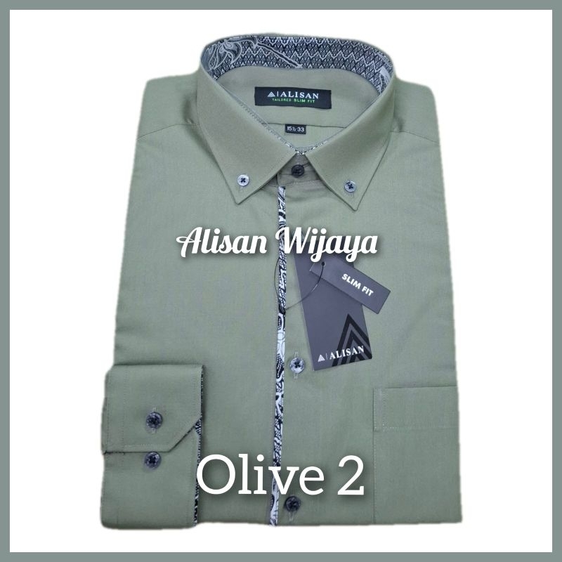 Kemeja Alisan Polos Kombinasi List Batik Lengan Panjang (100% Alisan Asli Original)