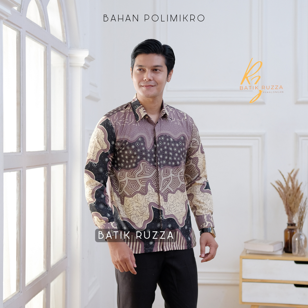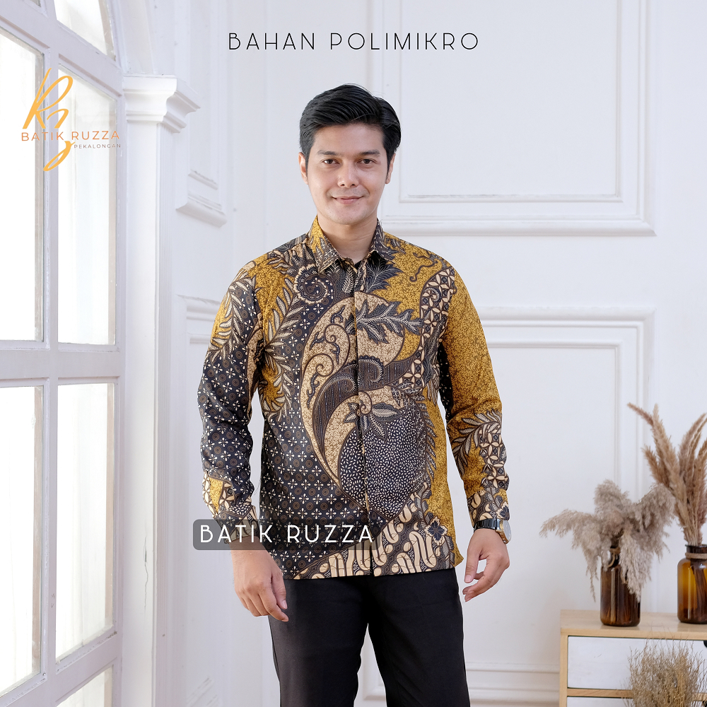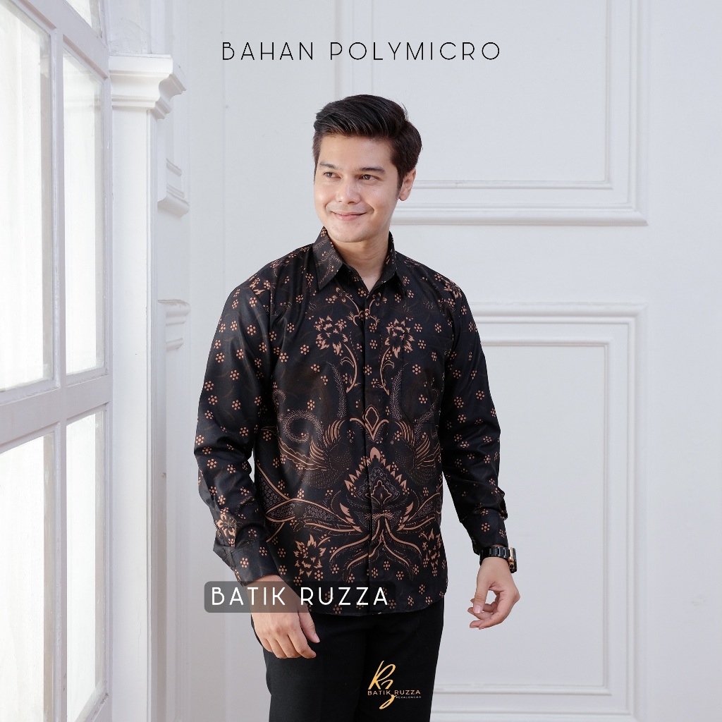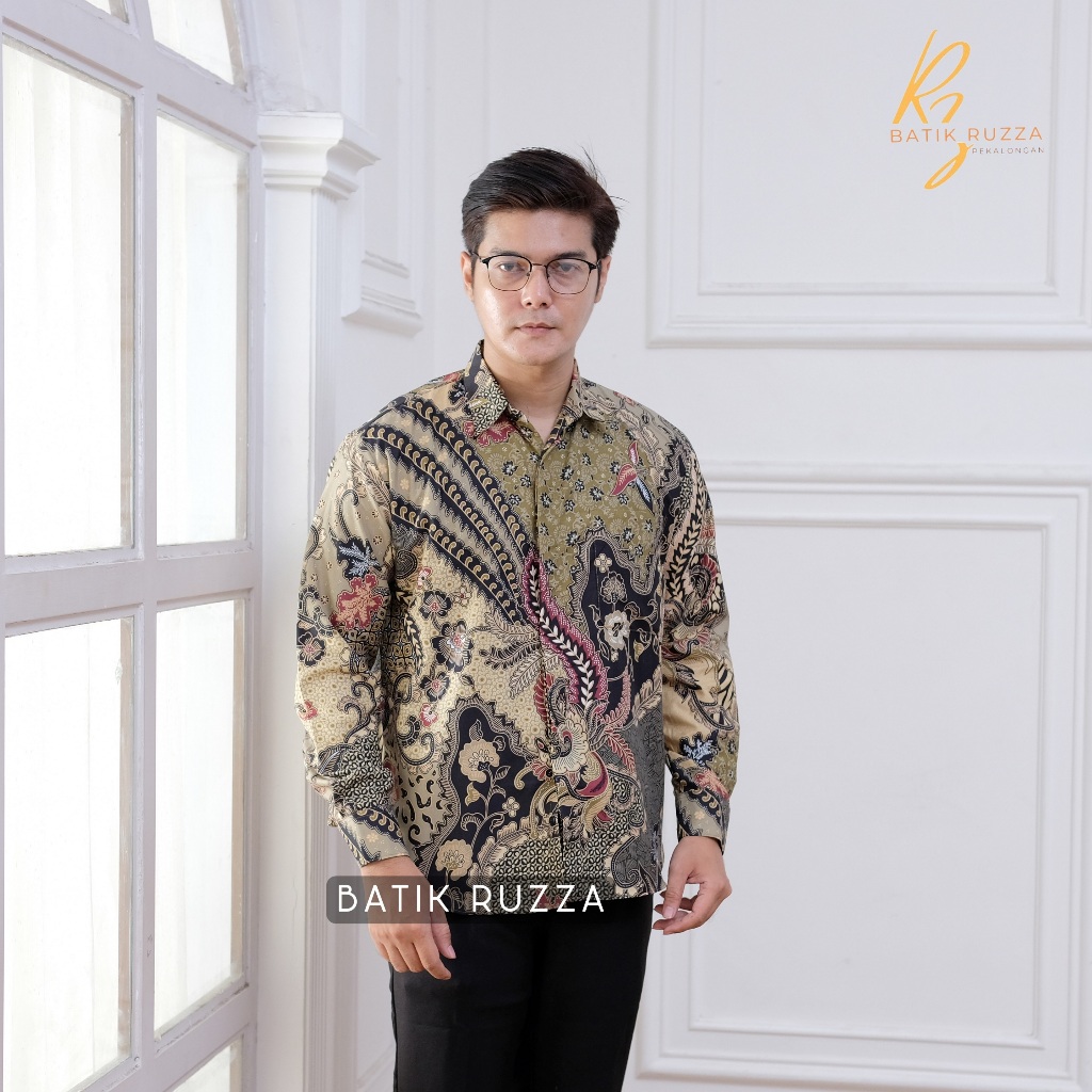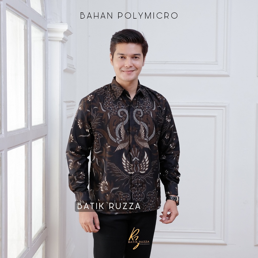 Kemeja Batik Pria Lengan Panjang Batik Ruzza Motif Sentani Hitam Sage Abu Dewasa