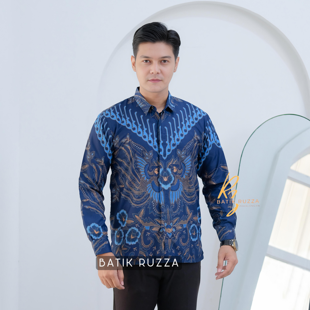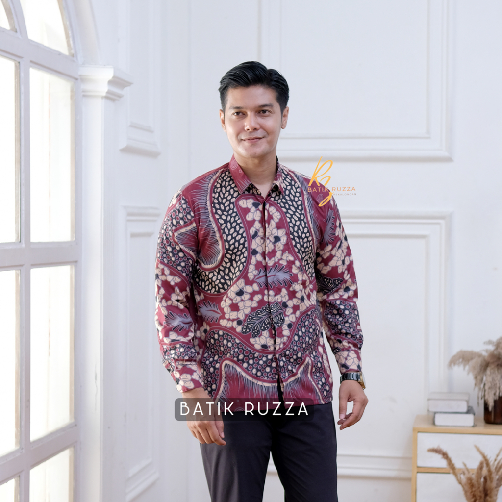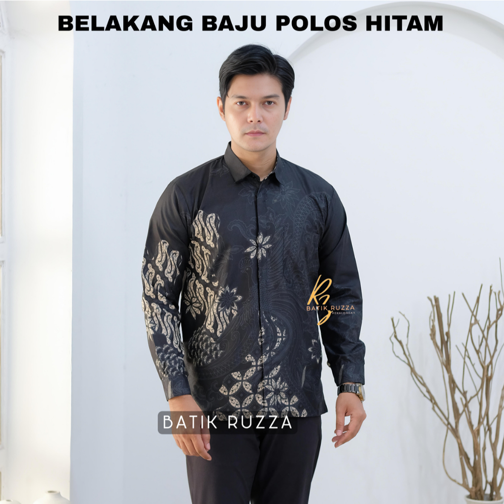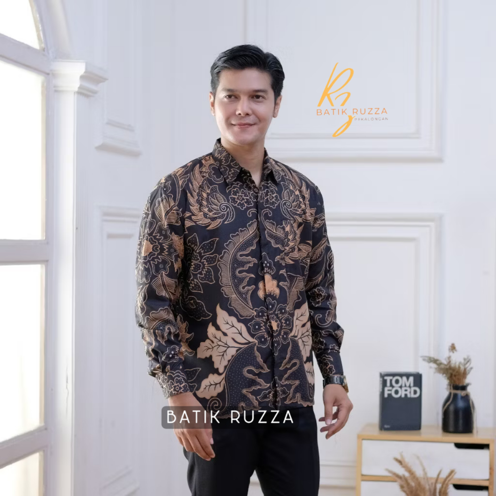 Kemeja Batik Pria Lengan Panjang Batik Ruzza Motif Sentani Hitam Sage Abu Dewasa
