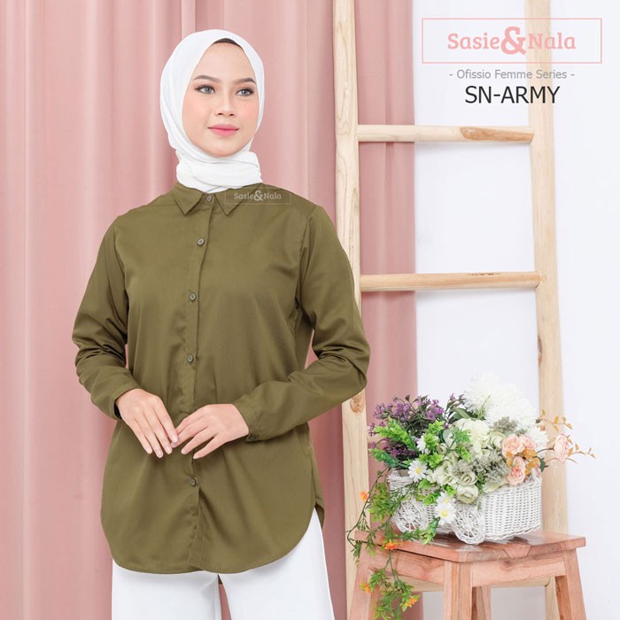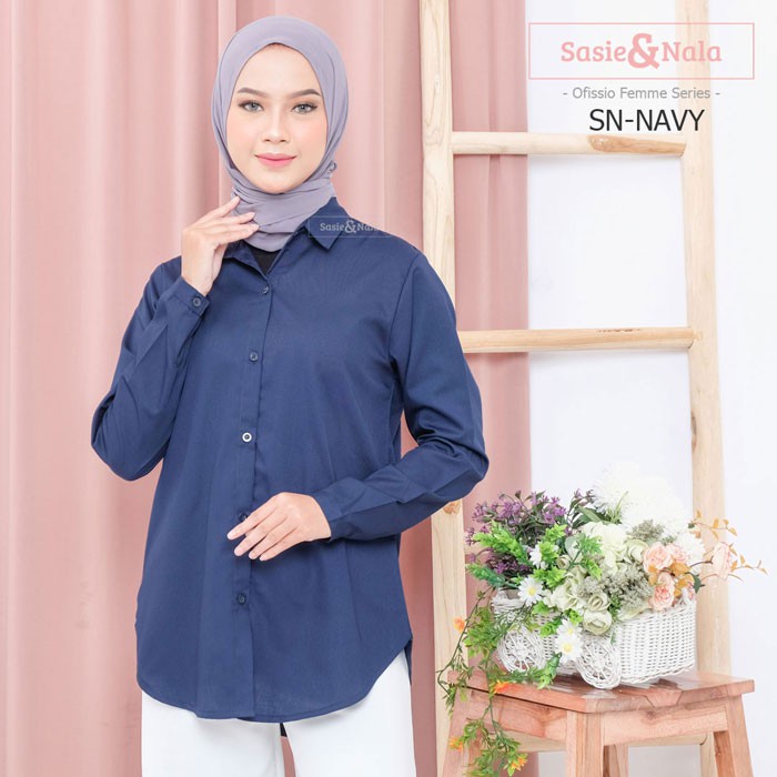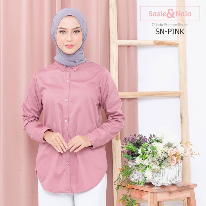 Kemeja Basic Wanita Merk SASIE & NALA Warna Abu Kebiruan-Biru Navy-Pink-Ungu-Mocca-Hijau Botol-Putih-Army-Mint-Marun