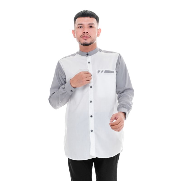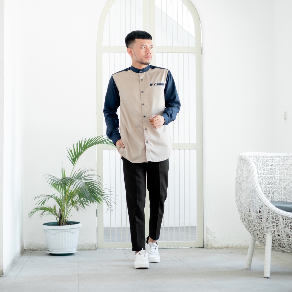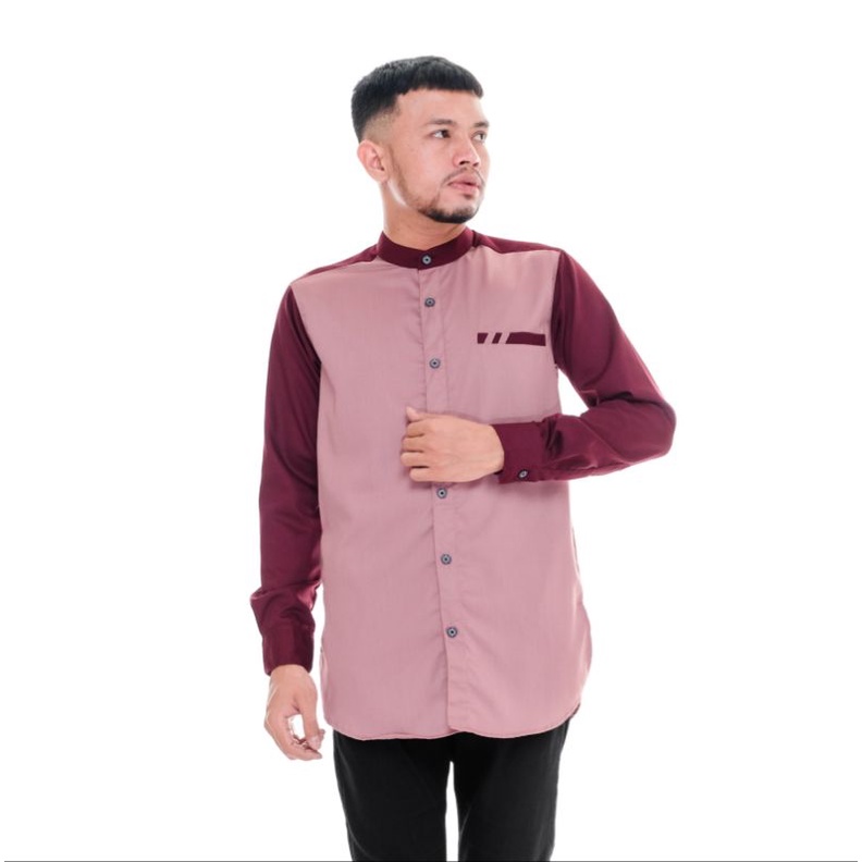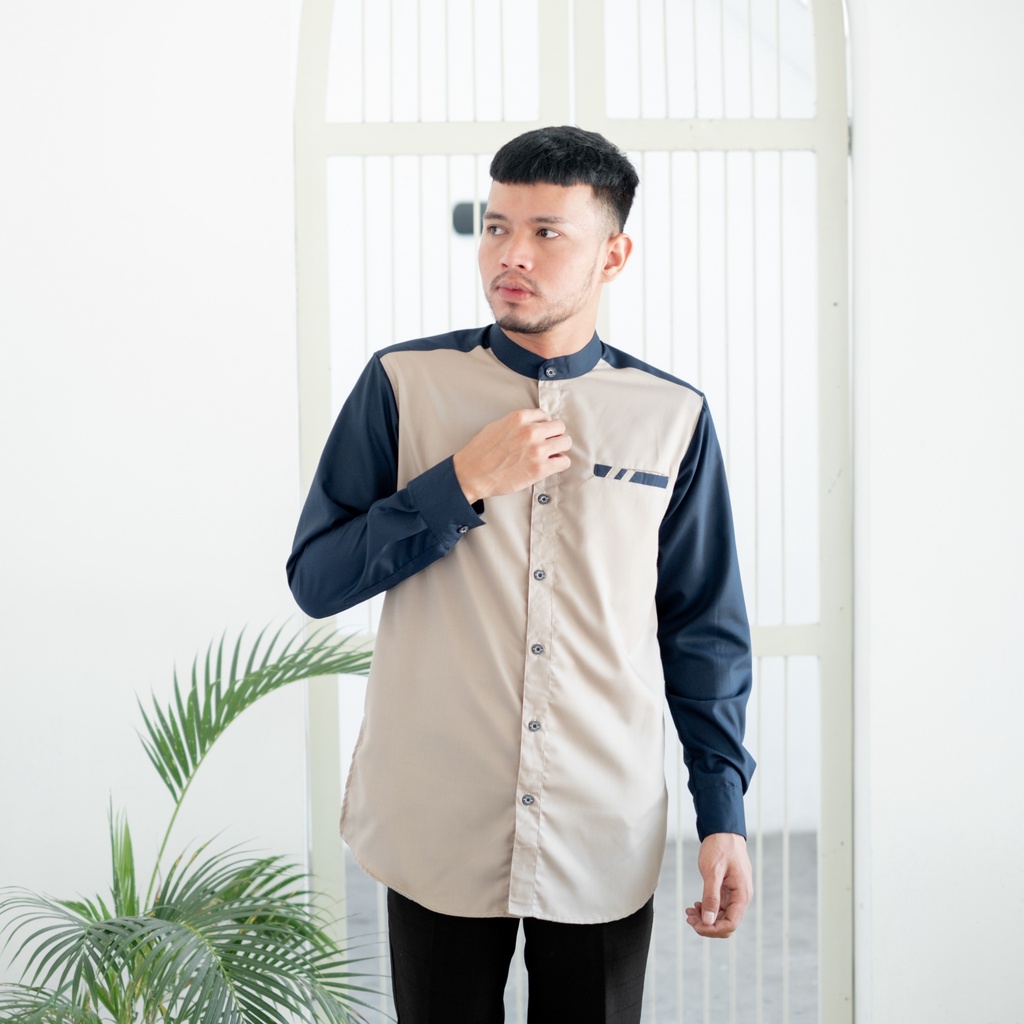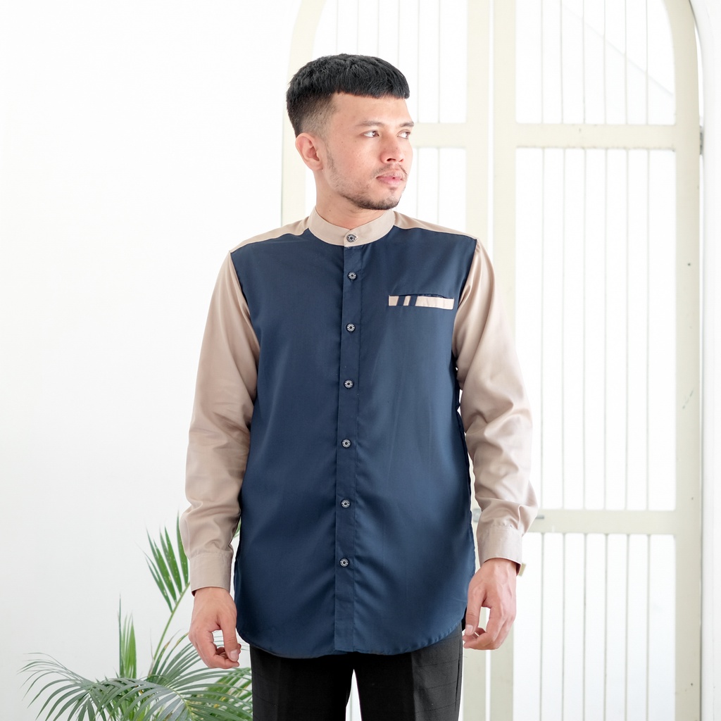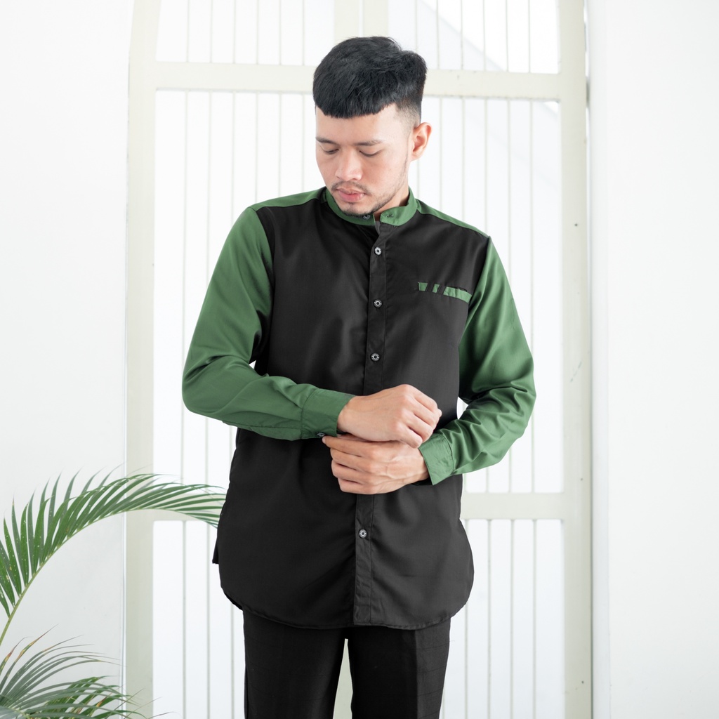 Kemeja Koko Pria Lengan Panjang Bahan Toyobo Premium Model Baju Koko Pria Kombinasi 2 Warna Raglan