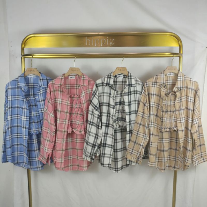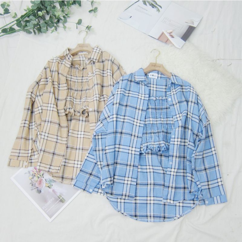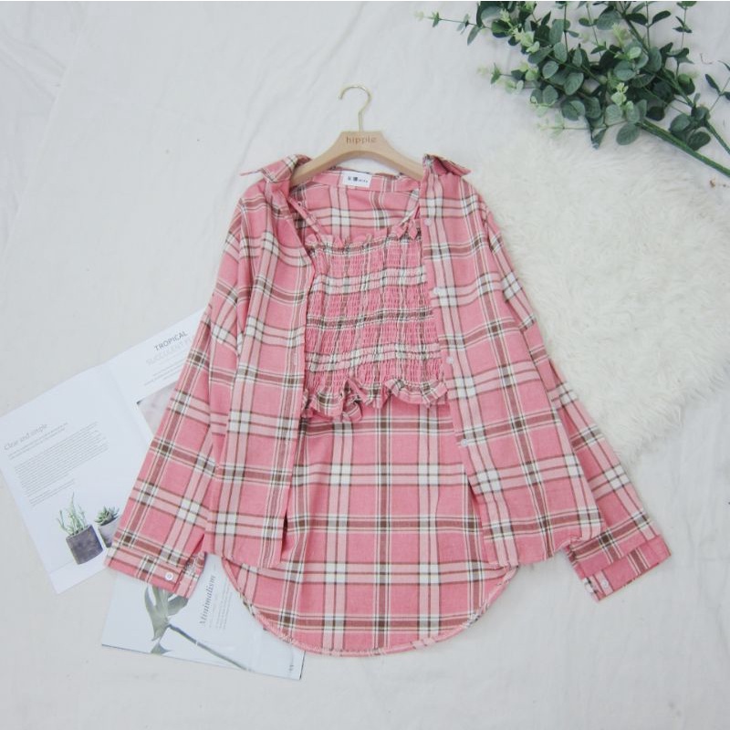 Kemeja Kotak Tangan Panjang Sudah Sama Dalaman Tanktop Hippie Fashion
