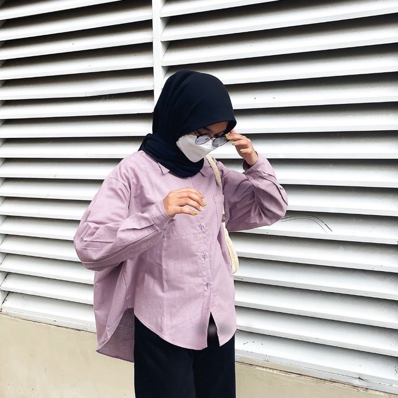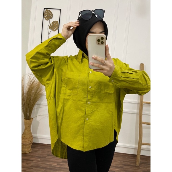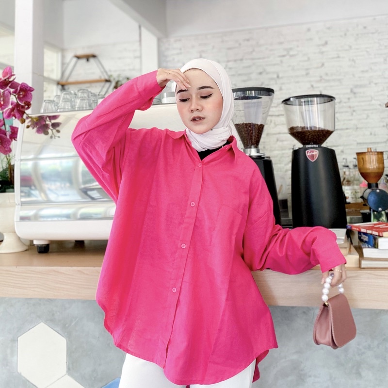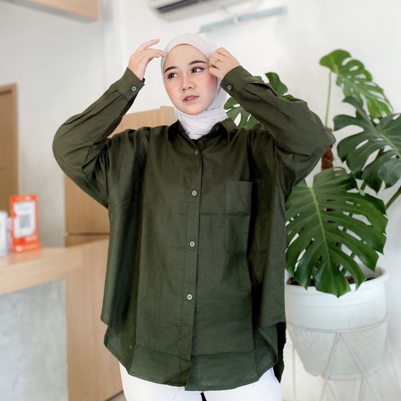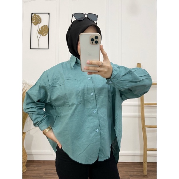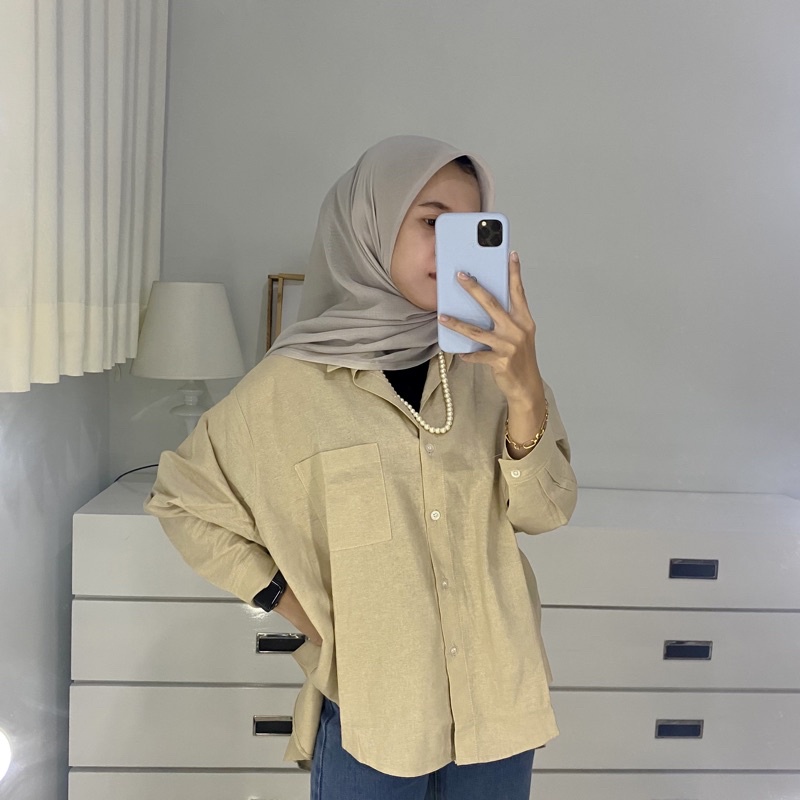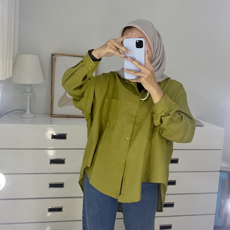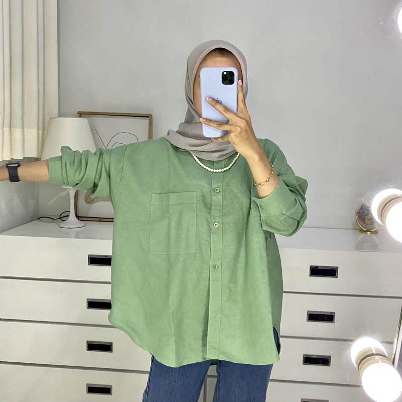 (COD) KEMEJA LINEN OVERSIZE SHIRT OVERSIZE KEMEJA POLOS SHIRT POLOS KEMEJA LINEN KEMEJA WANITA KEMEJA LINEN OVERSIZE POCKET KEMEJA BASIC LINEN