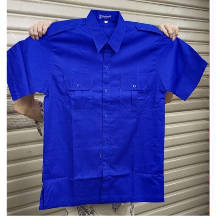 Kemeja PDH Polos Biru Seragam PDH Polos Biru Lengan Pendek Pria