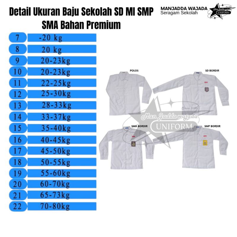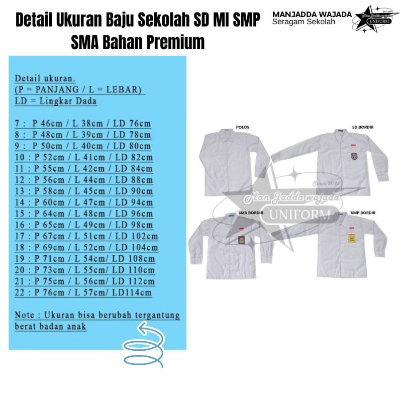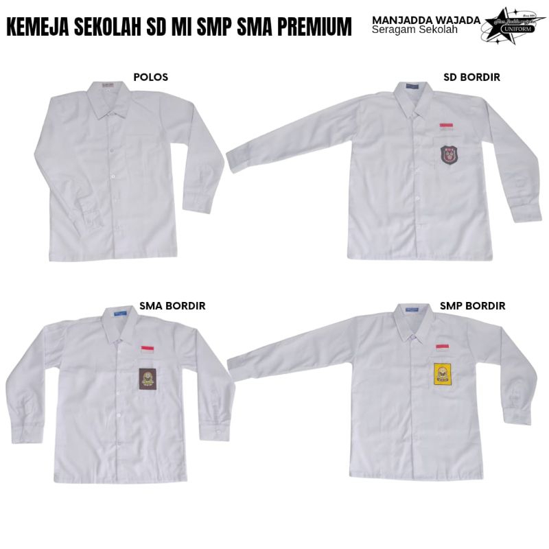 Kemeja Panjang Seragam Sekolah Putih Bed Bordil SD MI SMP SMA Baju Sekolah Lengan Panjang SD SMP SMA