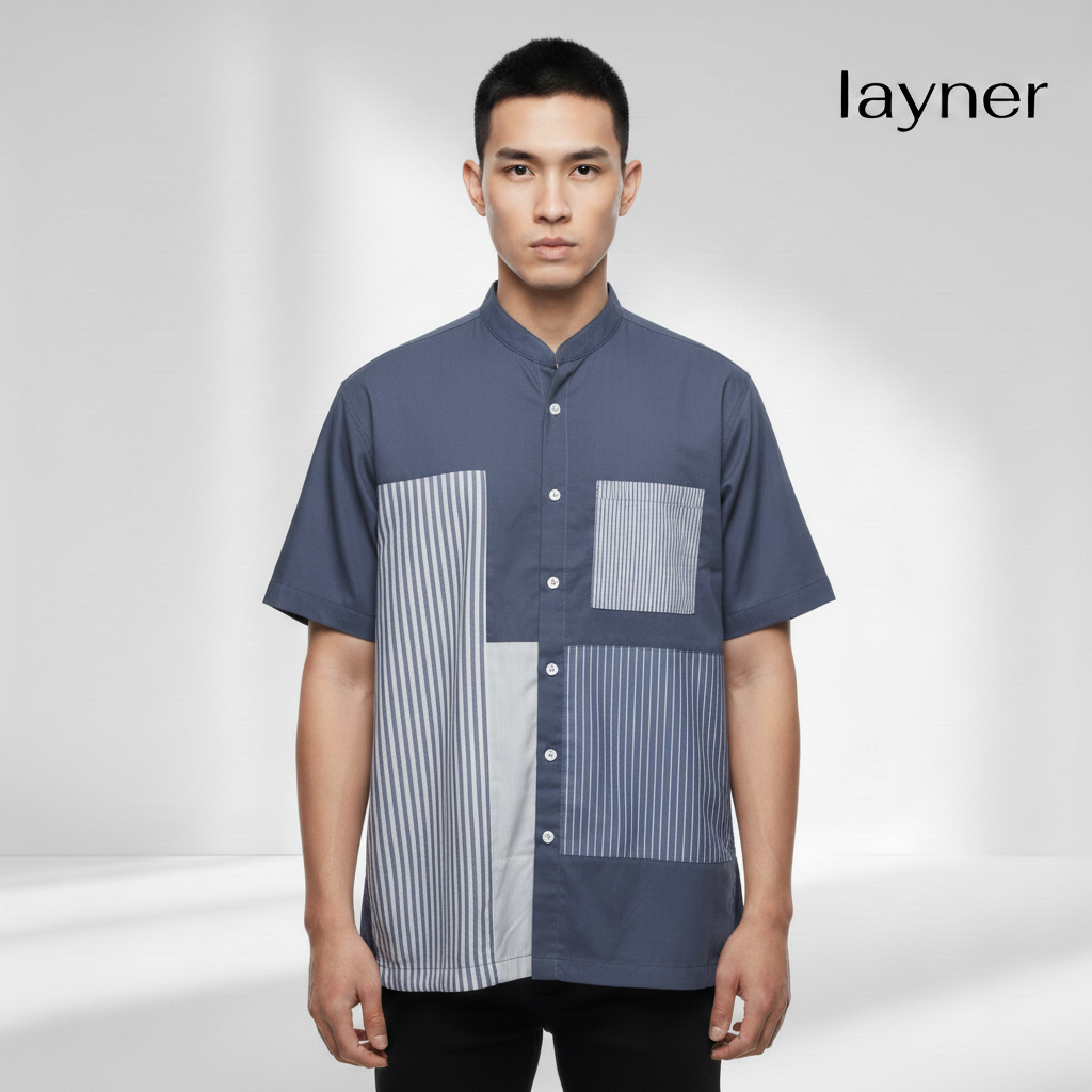 Kemeja Pria Lengan Pendek Salur Denim Biru Layner Admeliora Archie - Stylish Nyaman & Kasual Premium