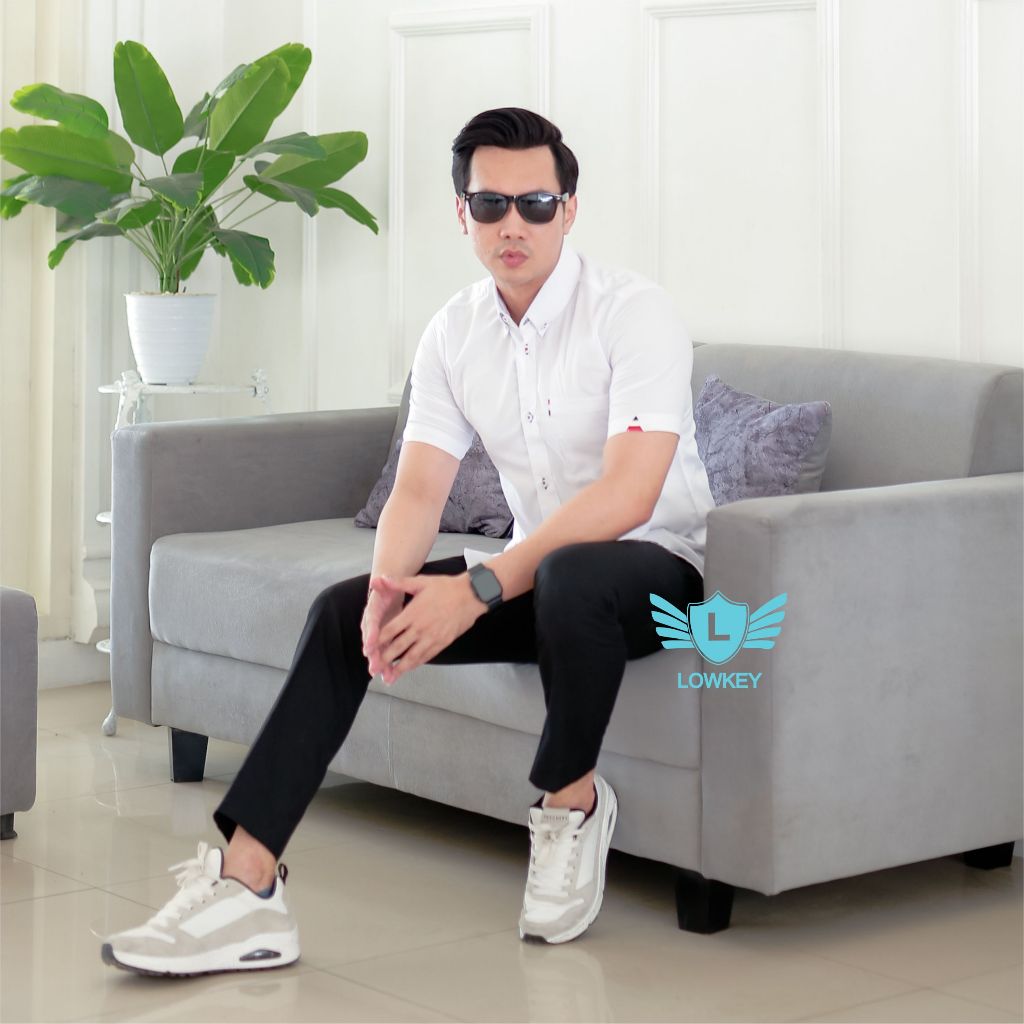 Kemeja Pria Slimfit Lowkey Premium PD 15 Putih | Hem Atasan Kemeja Baju Laki-laki/Cowok Slimfit Kemeja Pria Pendek Kemeja Cowok Dewasa Kemeja Cowok Keren Kemeja Pria Slimfit