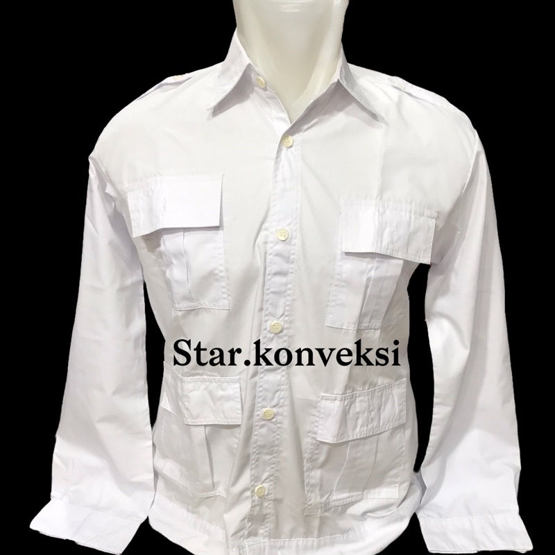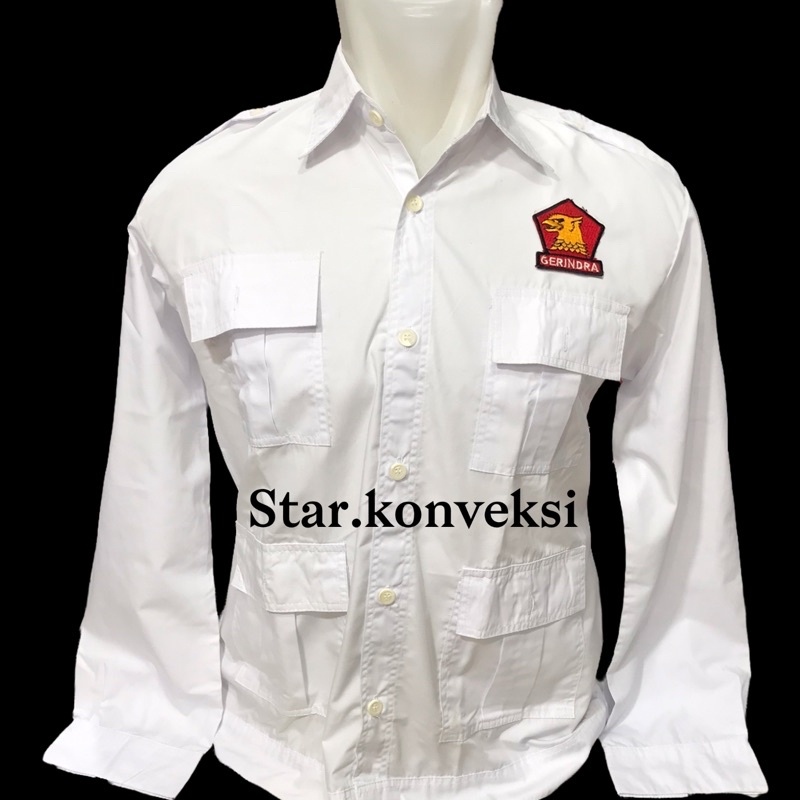 Kemeja Seragam PDH PRABOWO Partai Gerindra Kantong Saku Empat 4 Lengan Panjang Putih Terbaru Harga Terjangkau