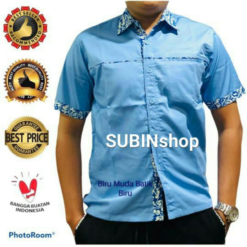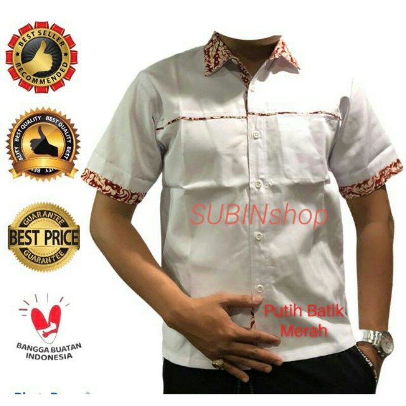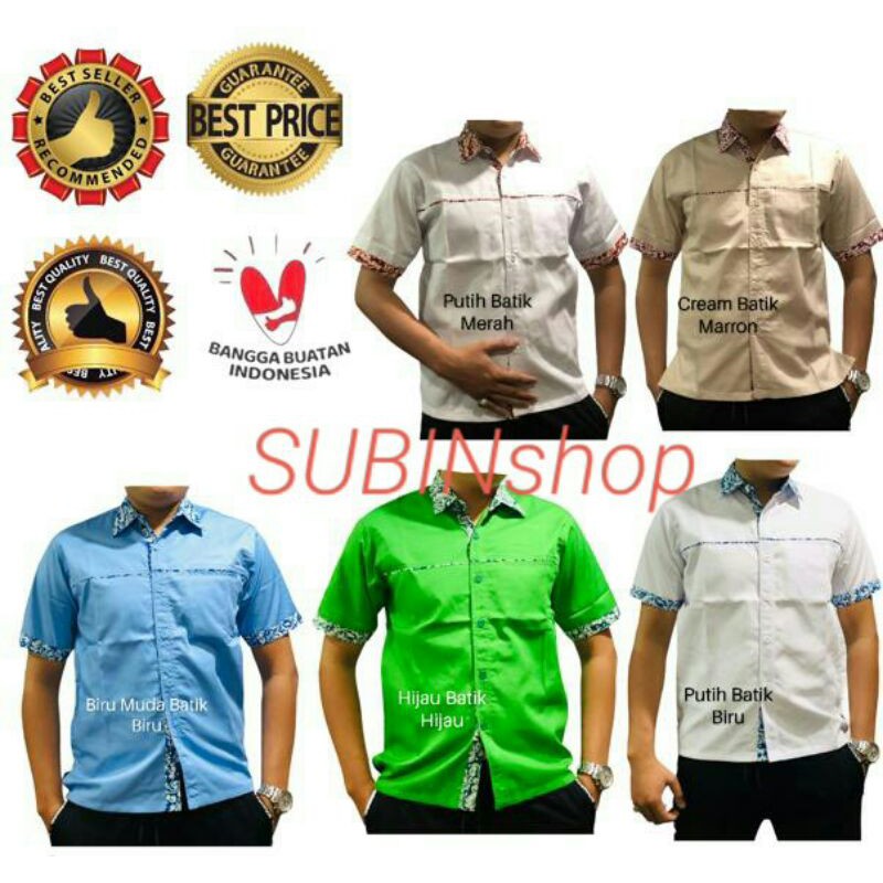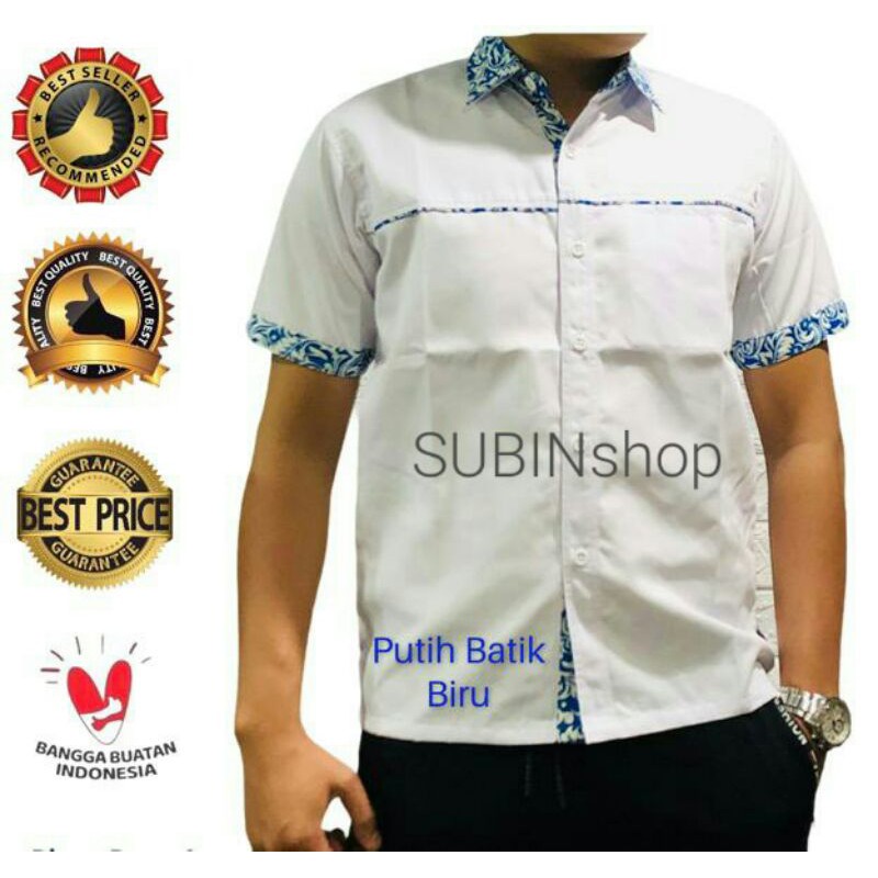 Kemeja Seragam/Promosi/Kerja/Putih Kombinasi Lis batik/s,m,l,xl