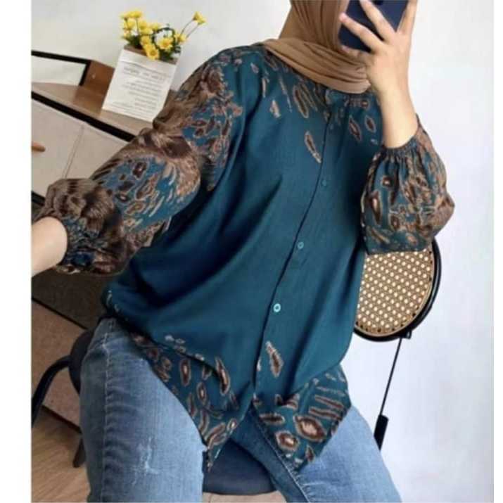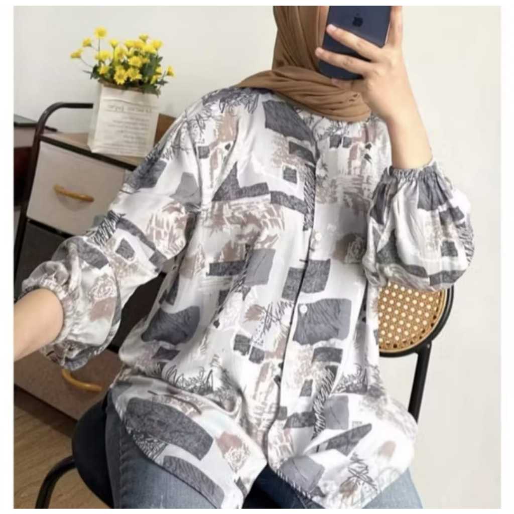 Kemeja Wanita Rayon Premium - Atasan Kemeja Motif - Blouse Rayon Motif - Kemeja Rayon Motif Cantik - Kemeja Kerja - Kemeja